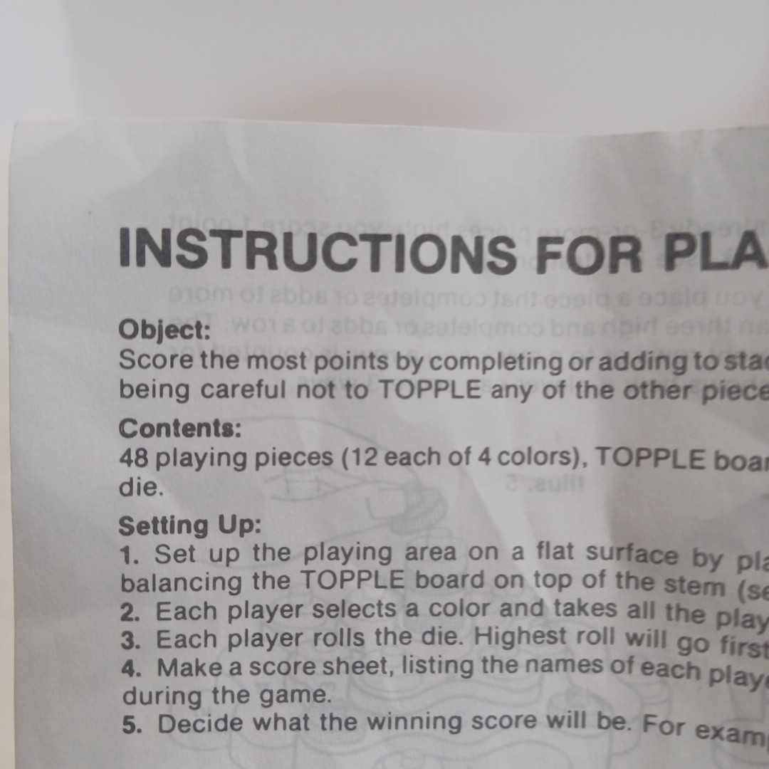 Vtg Topple Family 1992 Game By Pressman Missing 2 Pink Tokens