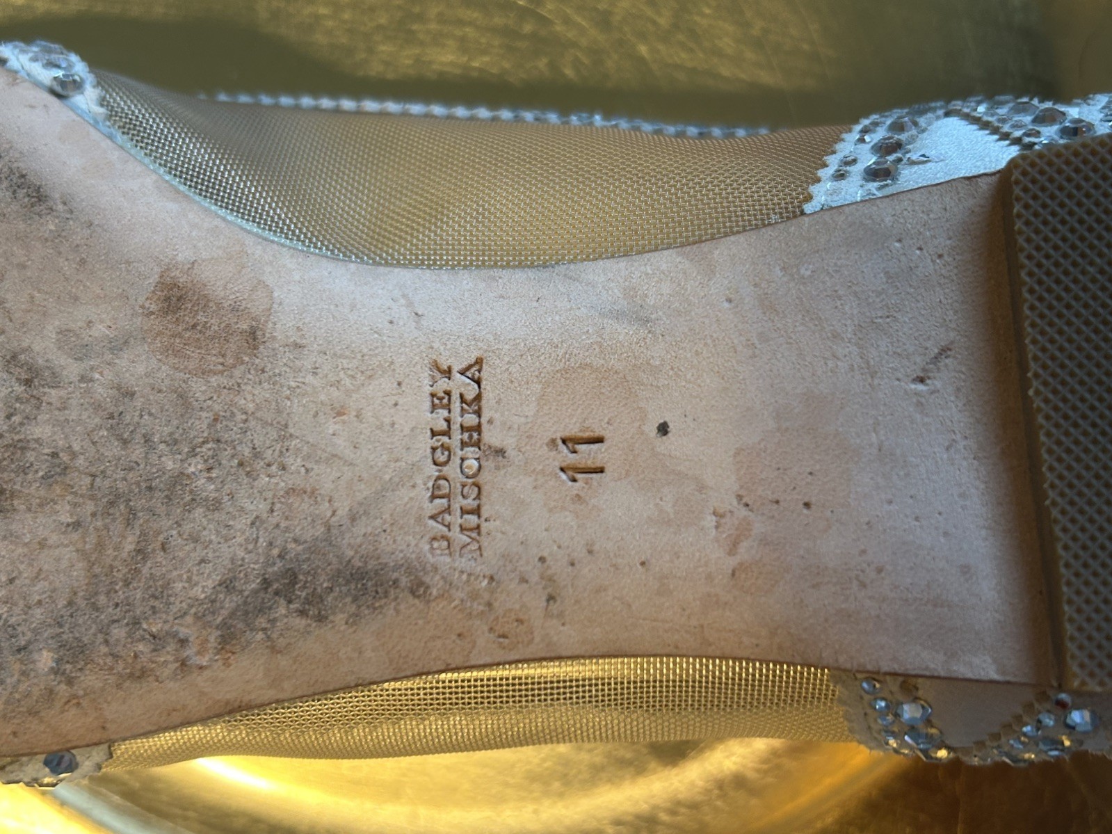 как выглядит Badgley Mischka Gigi Crystal Pointed Toe Flat Shoes Bridal Formal фото