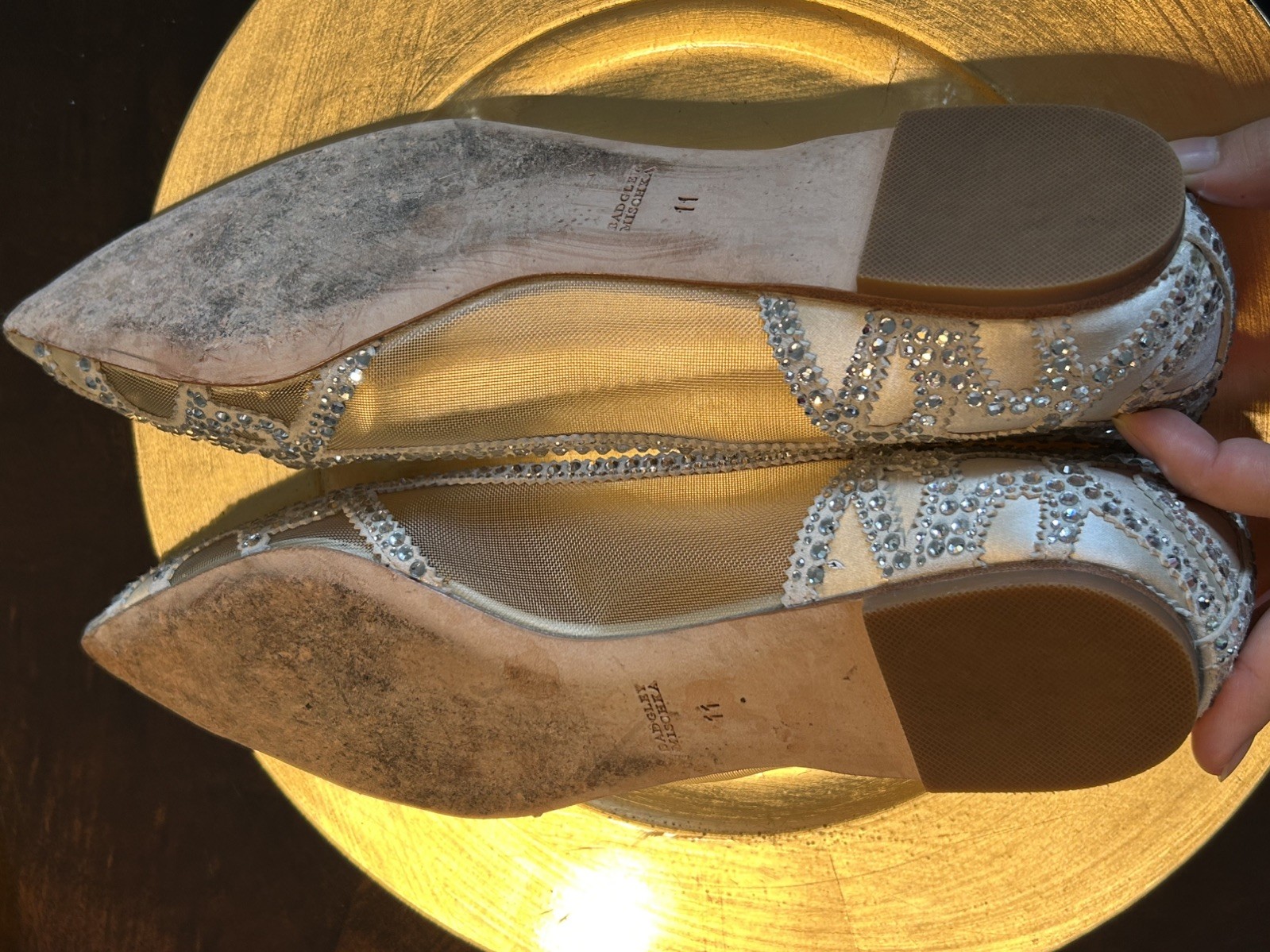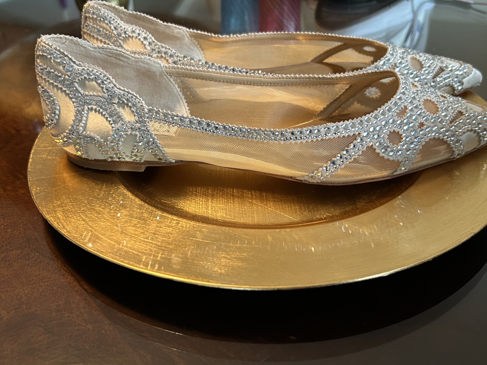 Badgley Mischka Gigi Crystal Pointed Toe Flat Shoes Bridal Formal