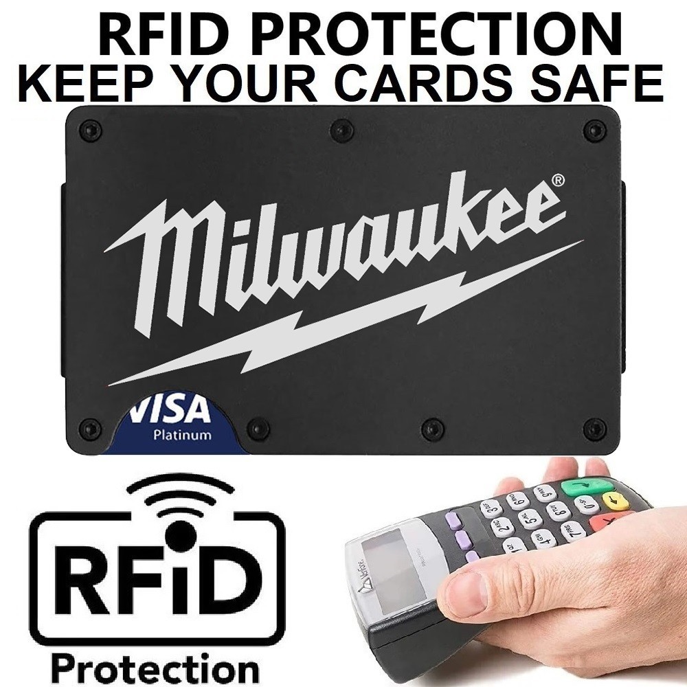 Custom Milwaukee Tool Mens Titanium Carbon RFID Blocking Engraved Wallet D7