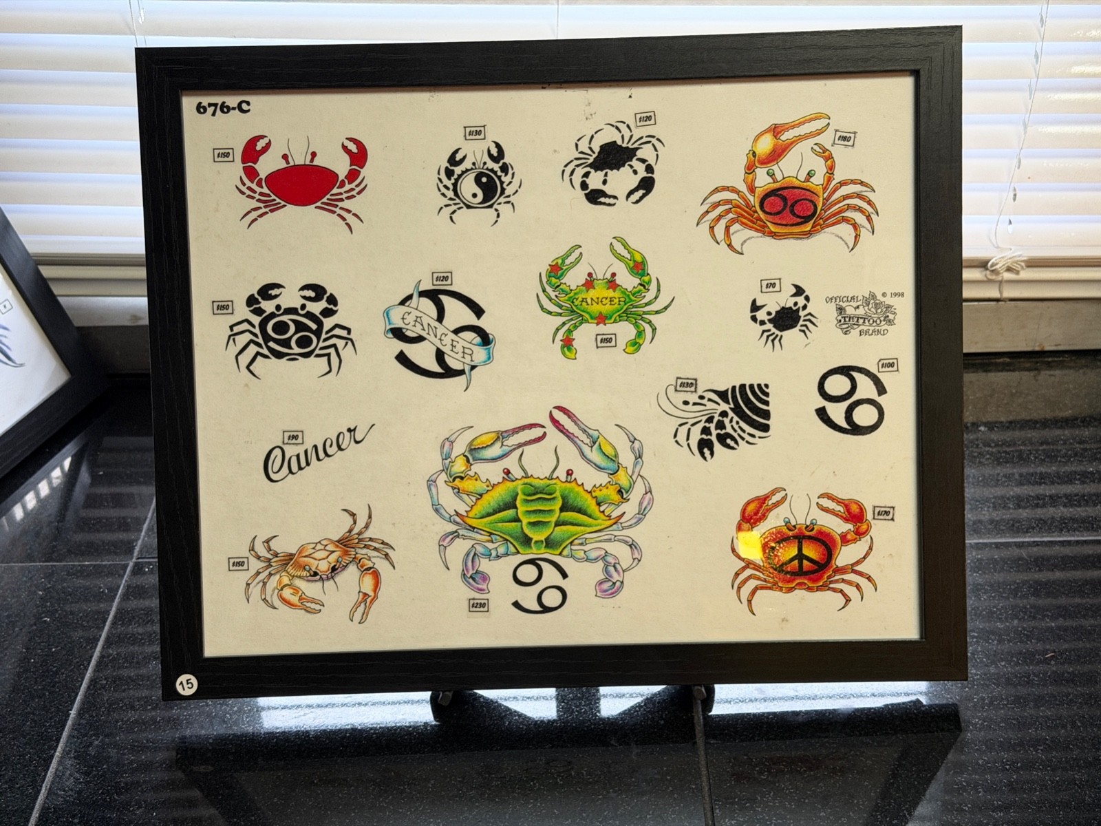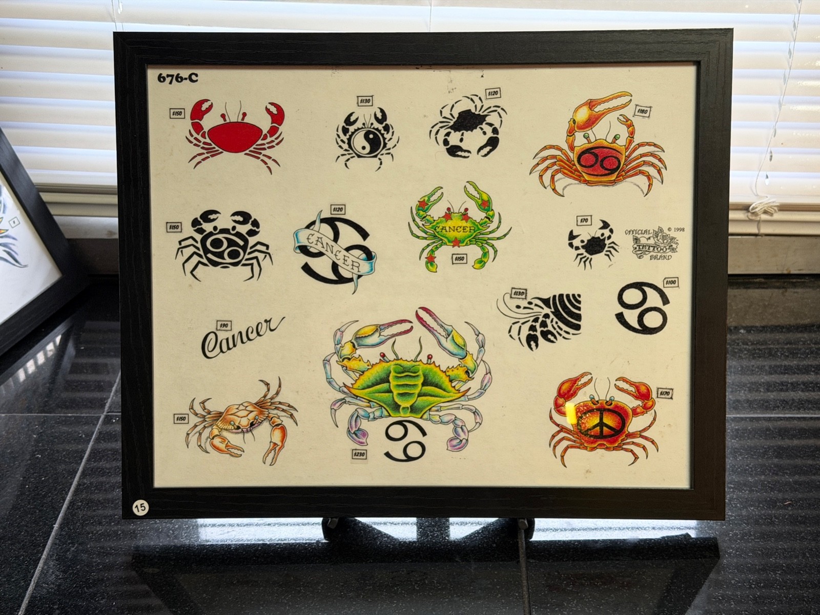 как выглядит American Traditional Tattoo Flash Art Framed 11x14 Ready-to-Hang Cancer 676-C фото