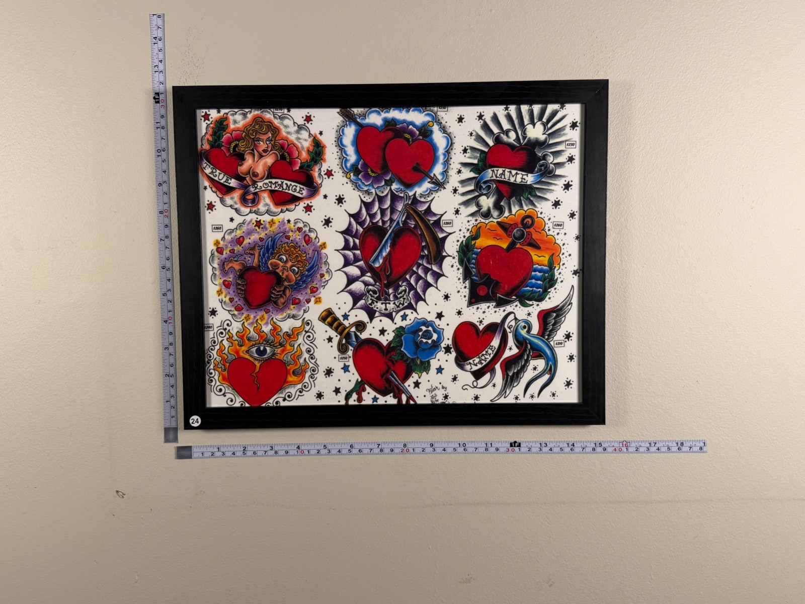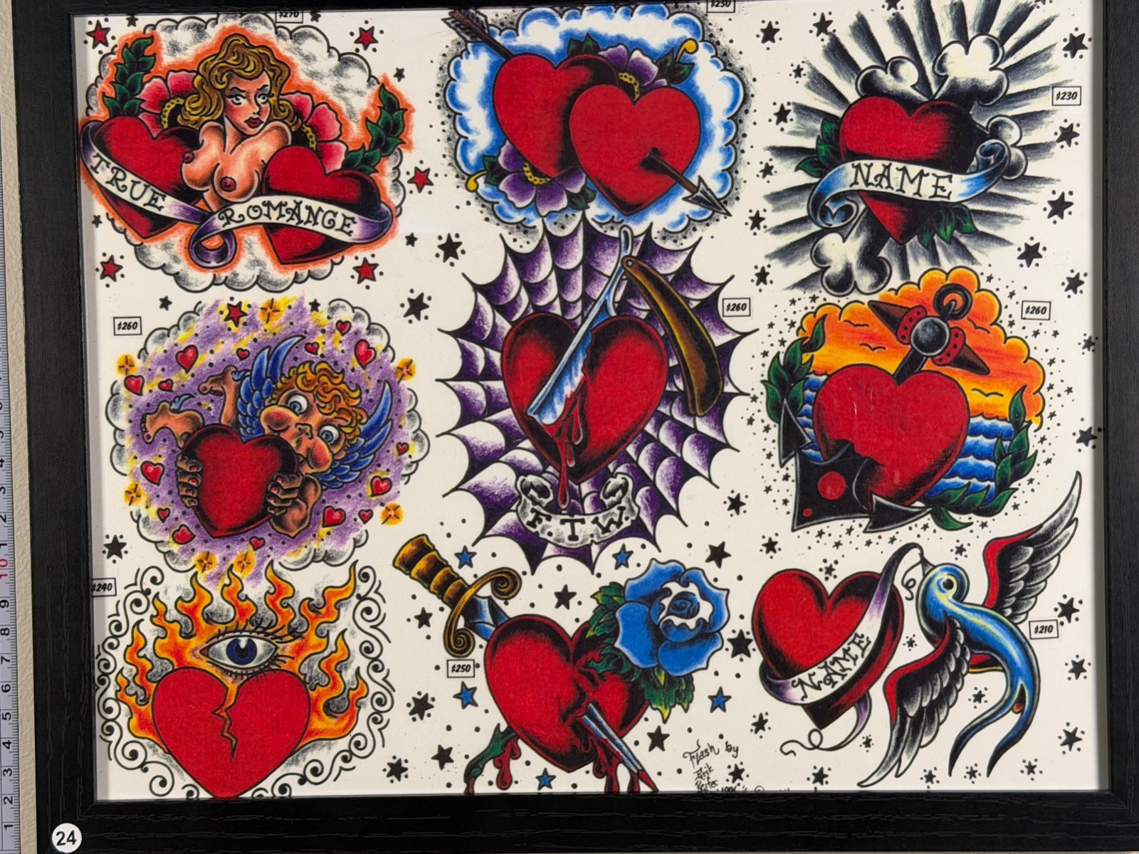 American Traditional Tattoo Flash Art Framed 11x14 Ready-to-Hang 24 Hearts
