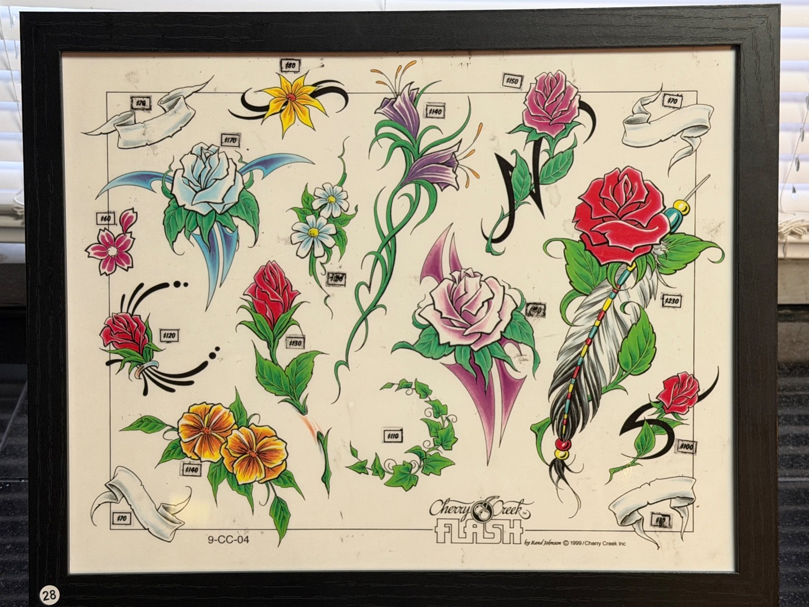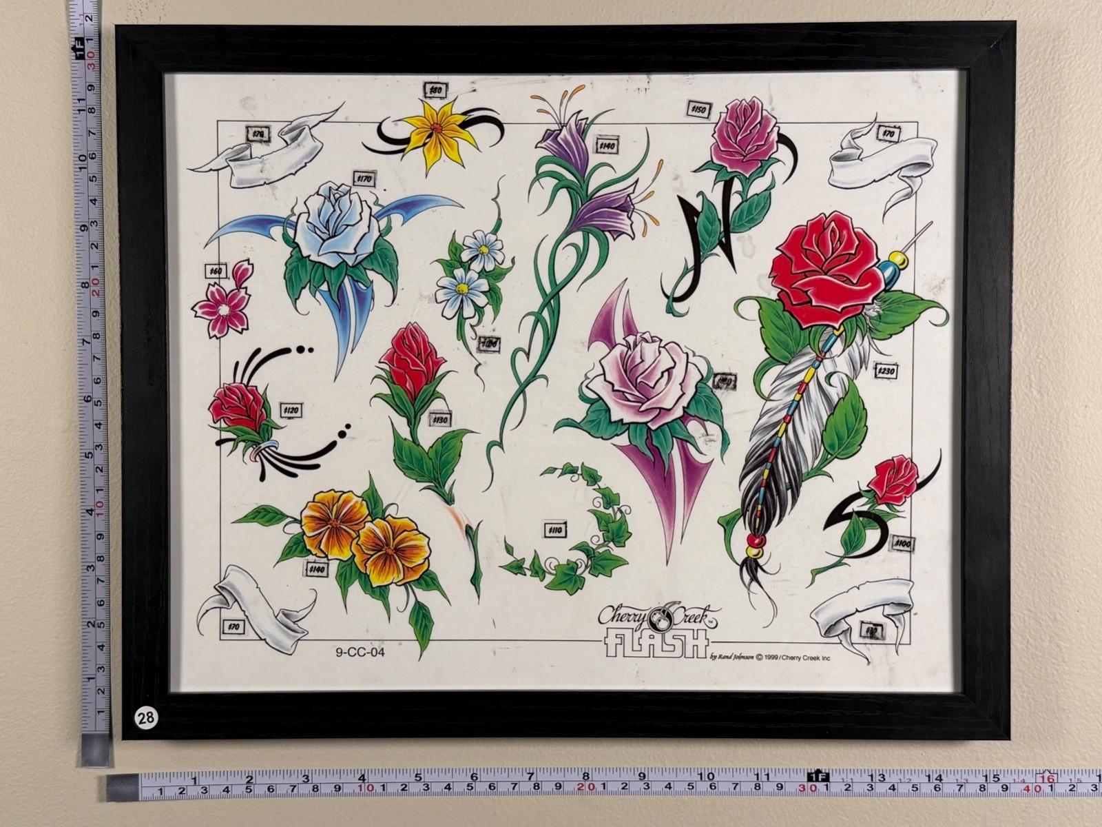 как выглядит American Traditional Tattoo Flash Art Framed 11x14 Ready-to-Hang 28 Flowers фото