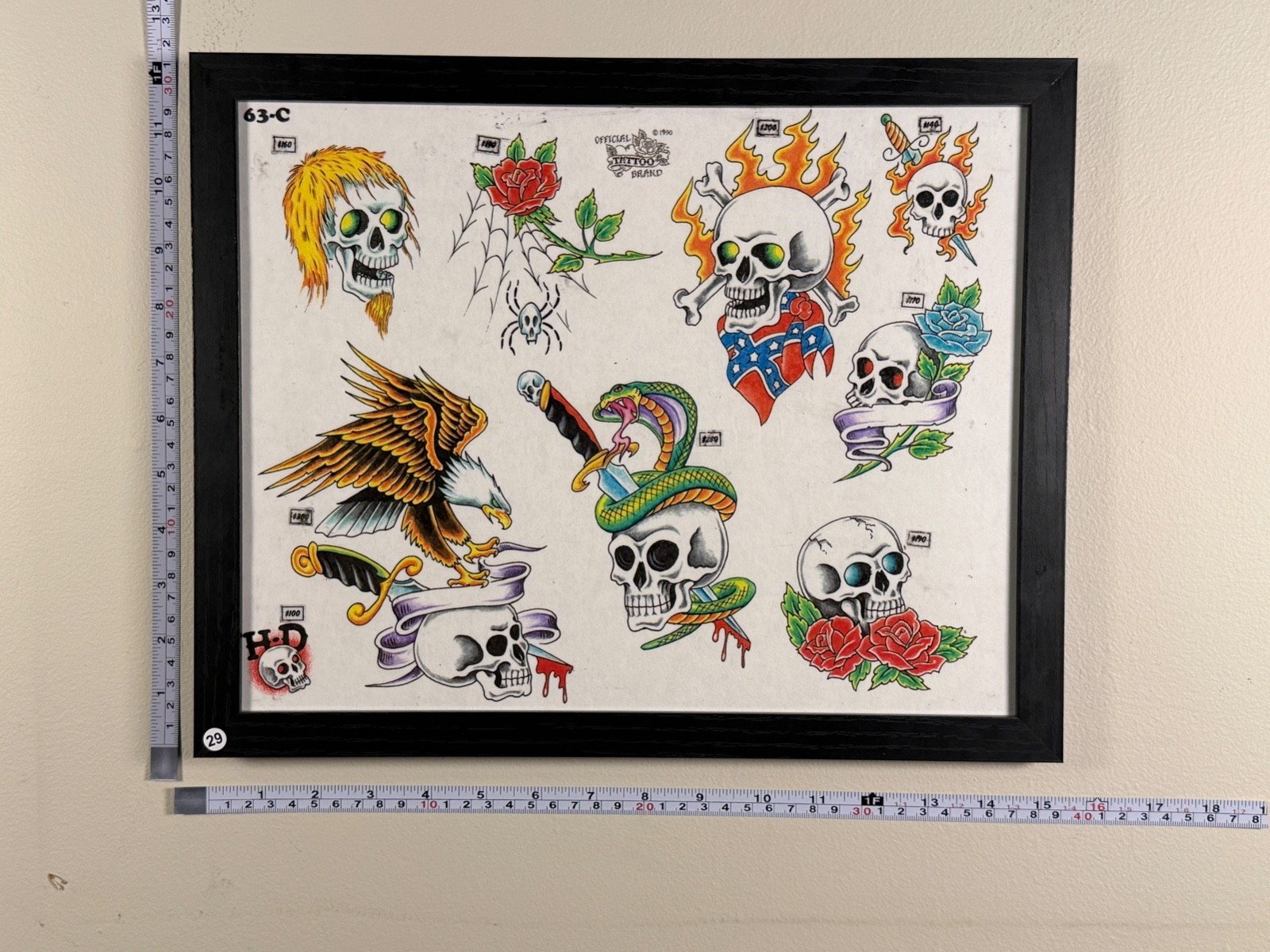American Traditional Tattoo Flash Art Framed 11x14 Ready-to-Hang 29 Skulls