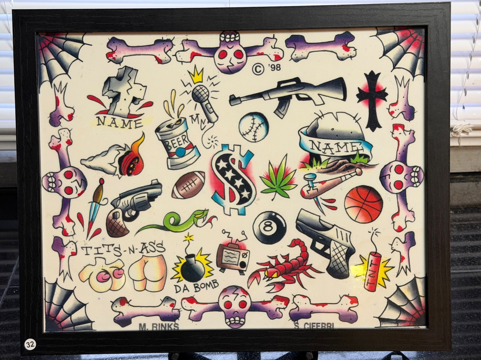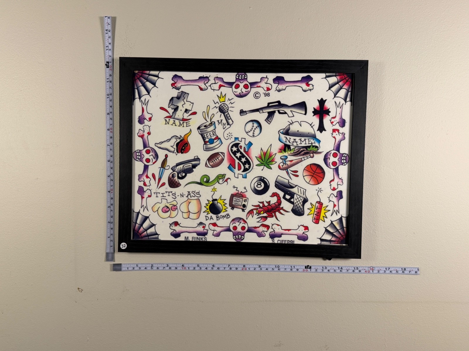 как выглядит American Traditional Tattoo Flash Art Framed 11x14 Ready-to-Hang 32 Smalls фото