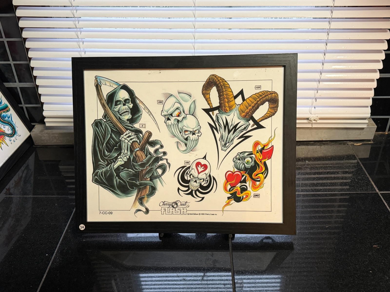 как выглядит American Traditional Tattoo Flash Art Framed 11x14 Ready-to-Hang 34 Reaper фото
