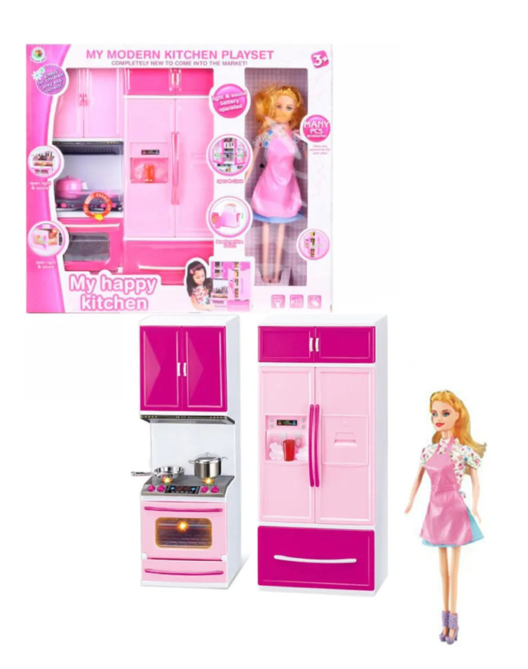 как выглядит My Modern Kitchen Playset with Doll Kids Toy Kitchen Lights Sounds Gift 3 фото