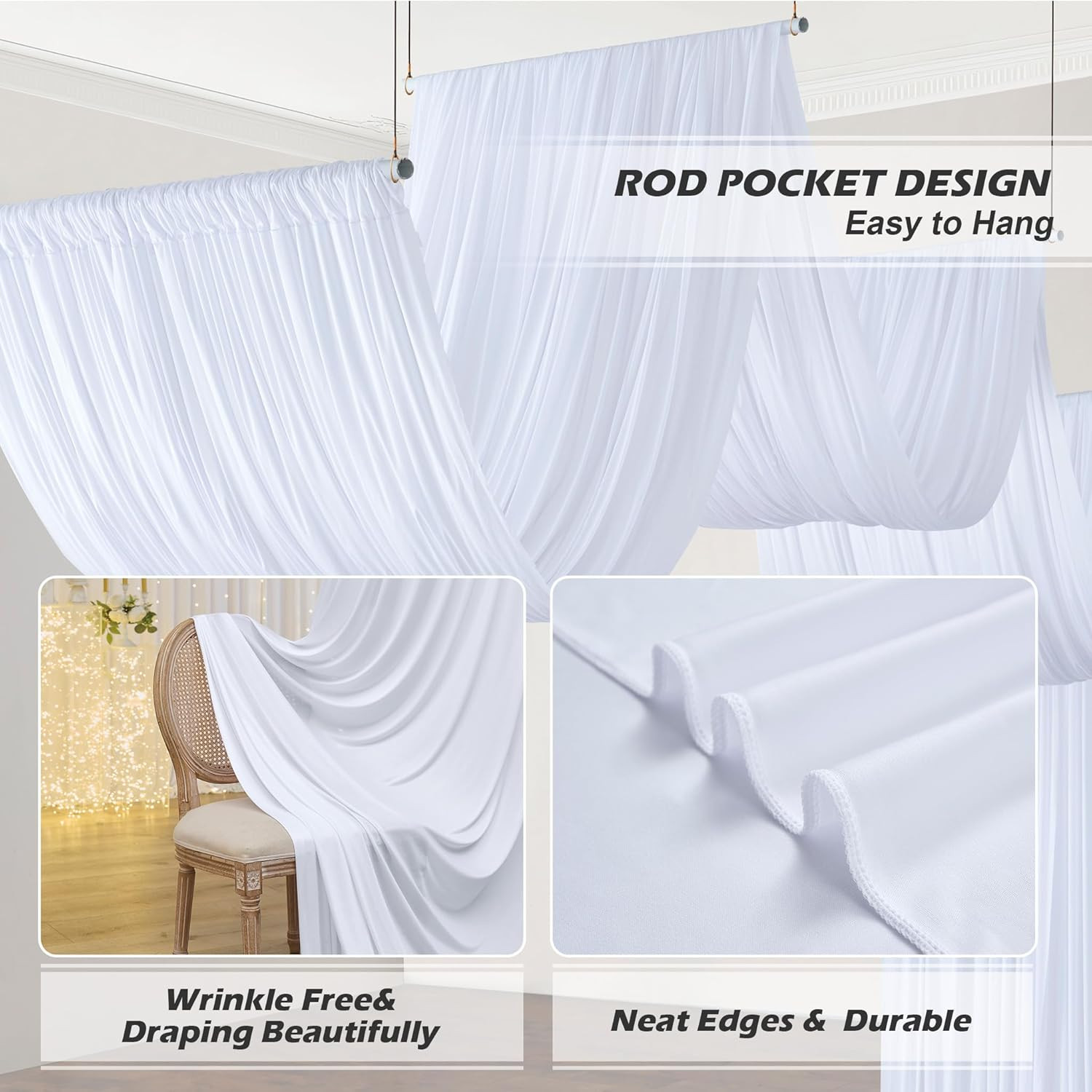20 Ft 20 Ft White Ceiling Curtain Drapes for Weddings Parties, Wrinkle Free Poly