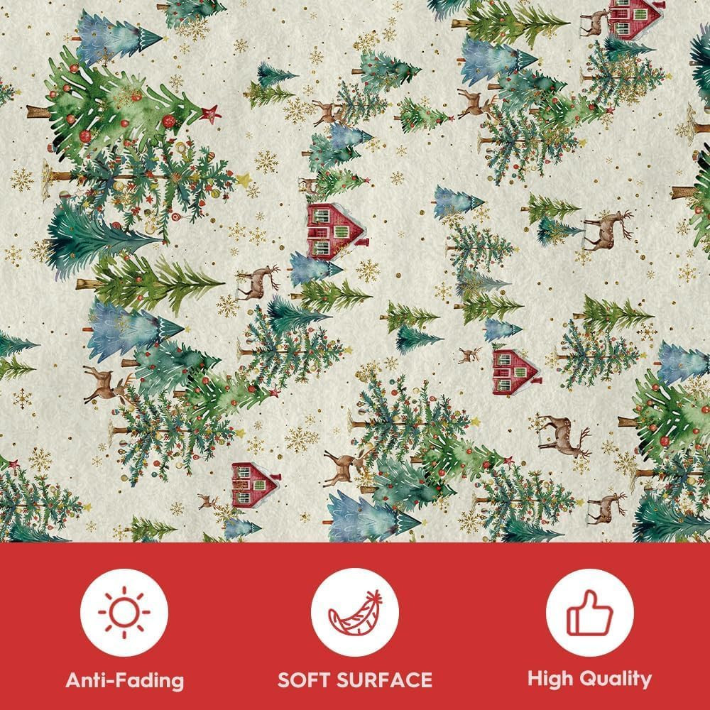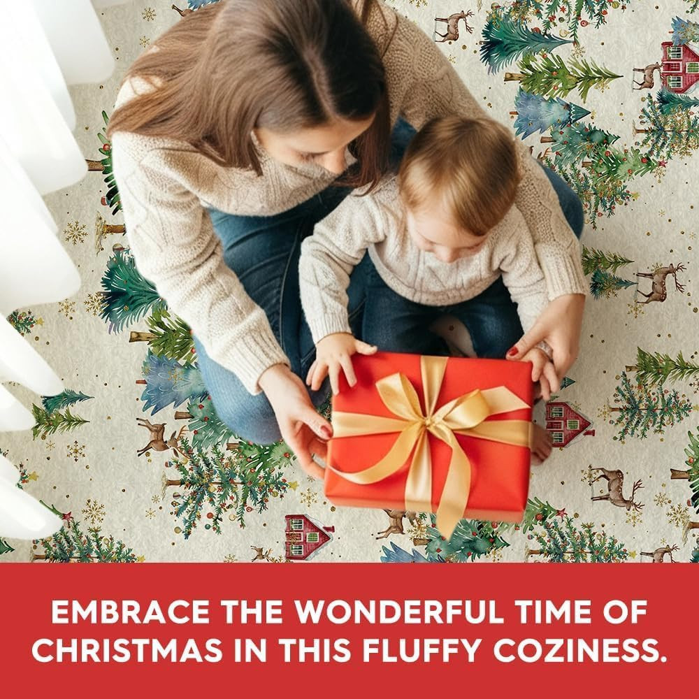 Green Pine Tree House Christmas Area Rug, Winter Home Decor Low-Profile Non-Slip