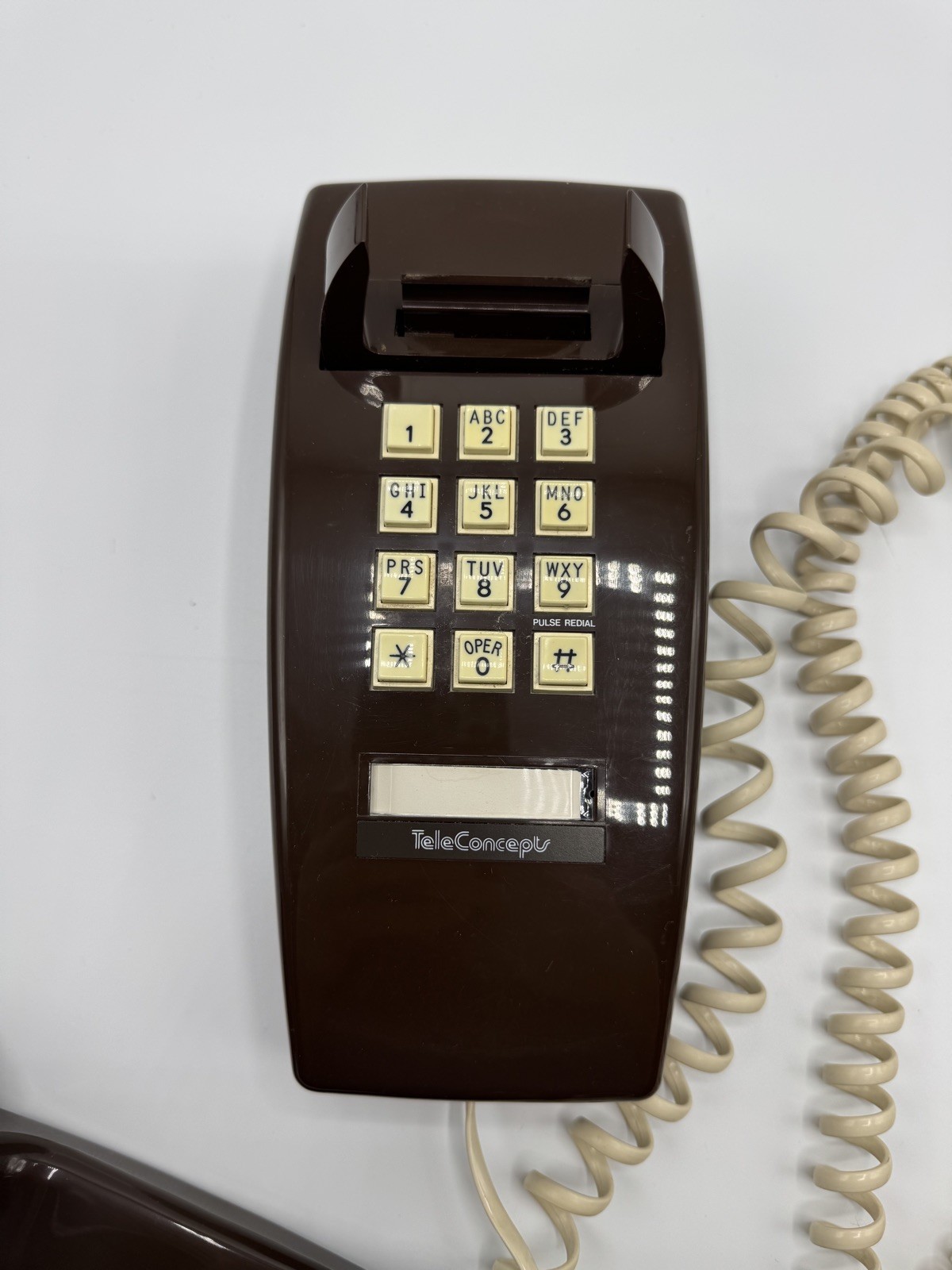 • Vintage TeleConcepts Wall Push Button Corded Brown Telephone - Working