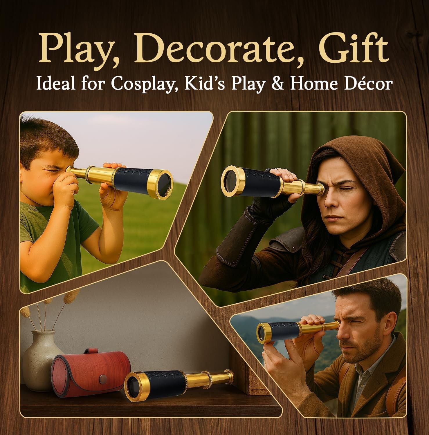 Functional 6 Brass Spyglass Telescope - Handheld Pirate Navigation, Glass Le...