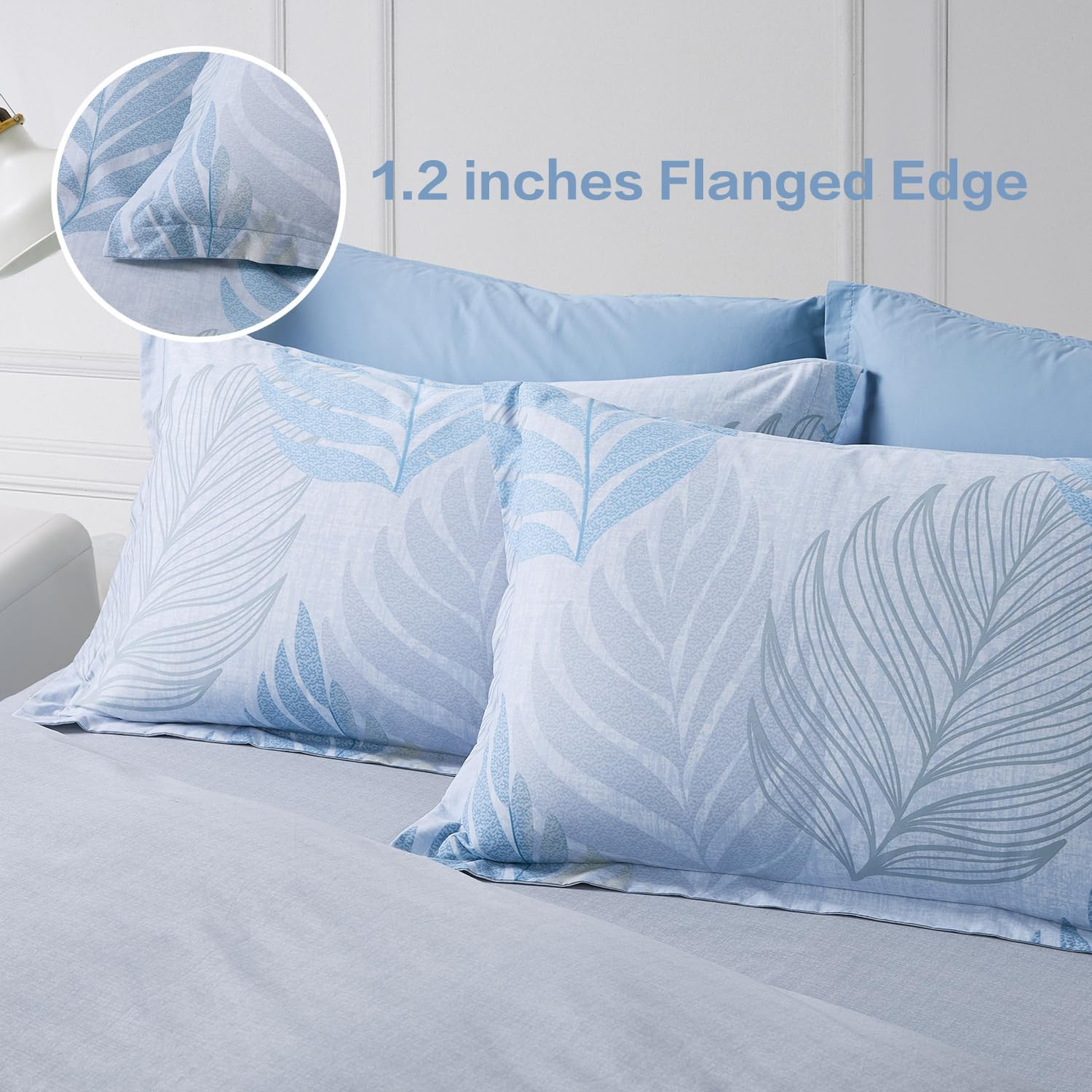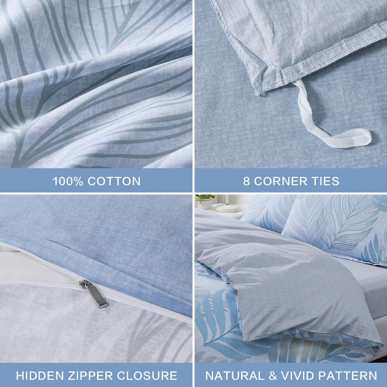 Tropical Monstera Leaf King Duvet Cover Set with Pillow Shams - Ocean Blue 3Pcs