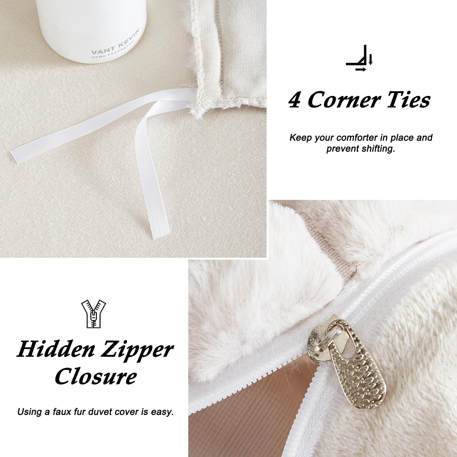 Fluffy Duvet Cover Set Super Soft Faux Fur Comforter Cover Set King Size Cozy Pl