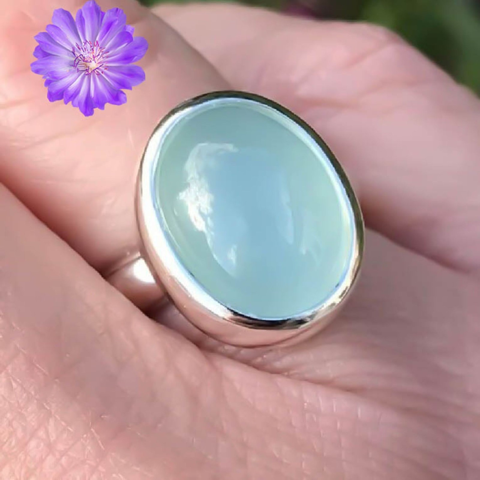Blue Chalcedony Gemstone 925 Sterling Silver Handmade Jewelry Ring Gift For