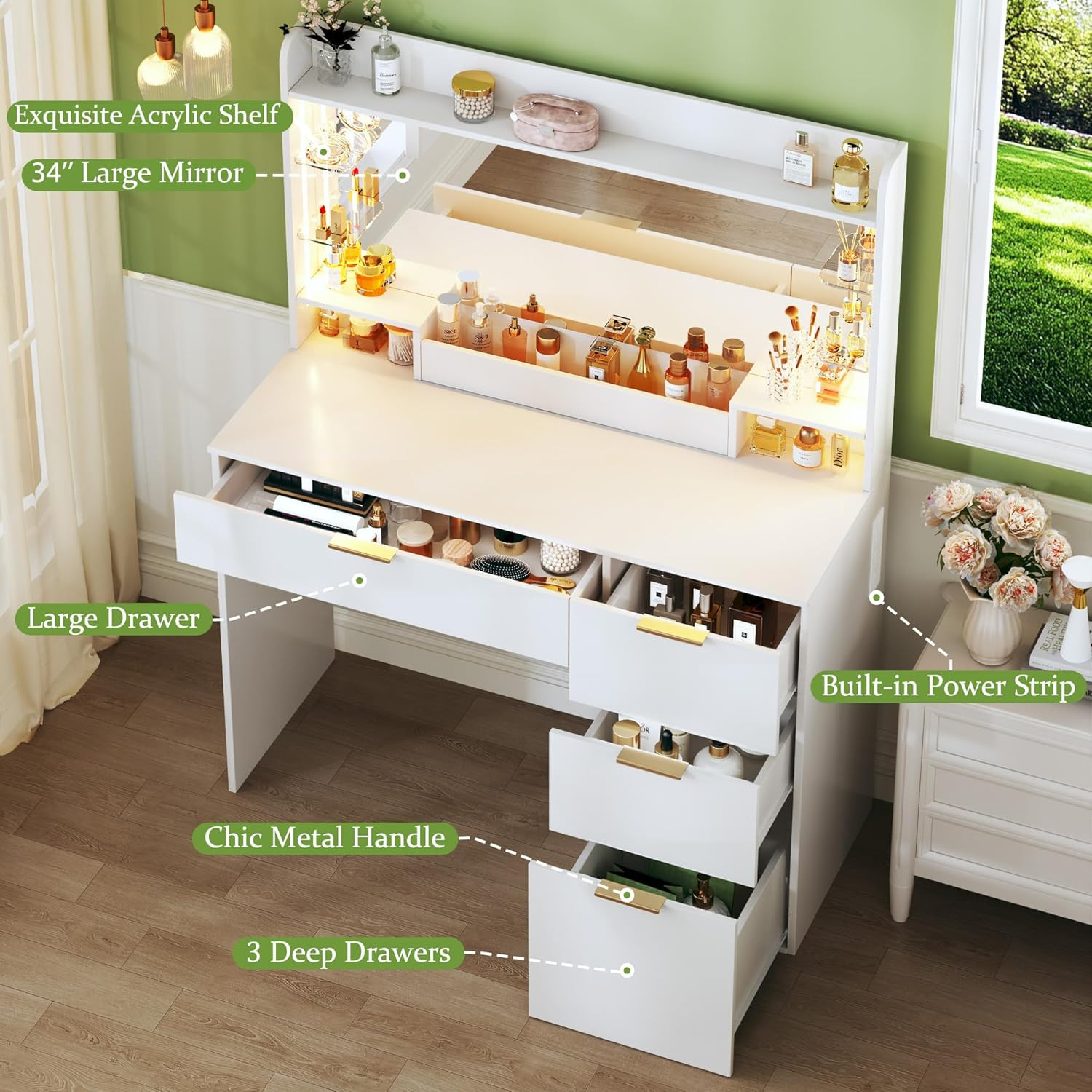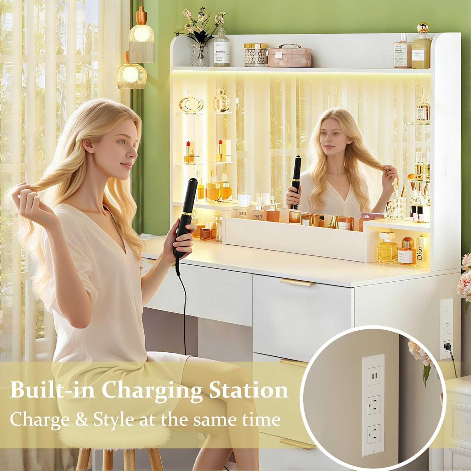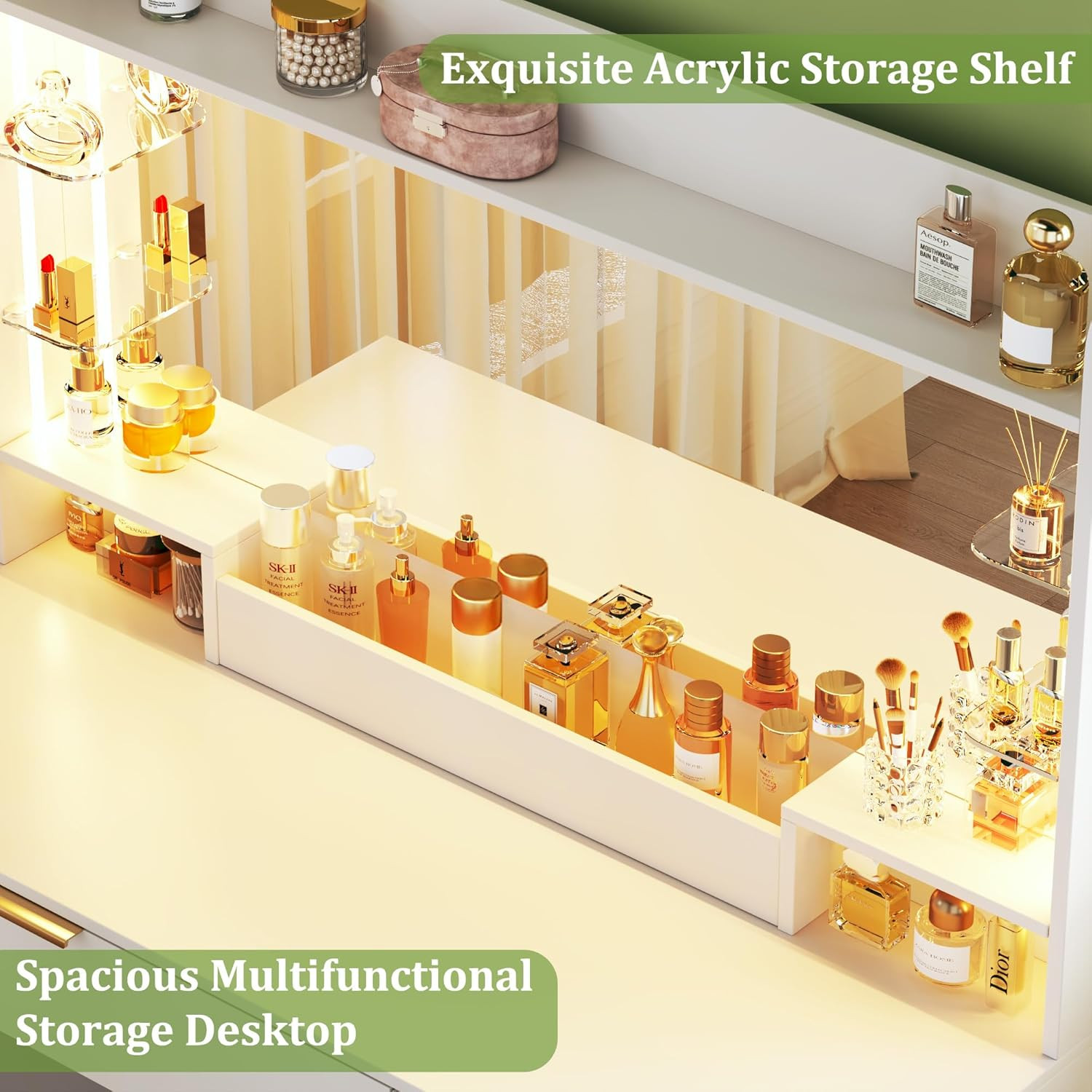 Vanity Desk with Mirror and Lights, Makeup Vanity with Lights, 3 Color Lighting