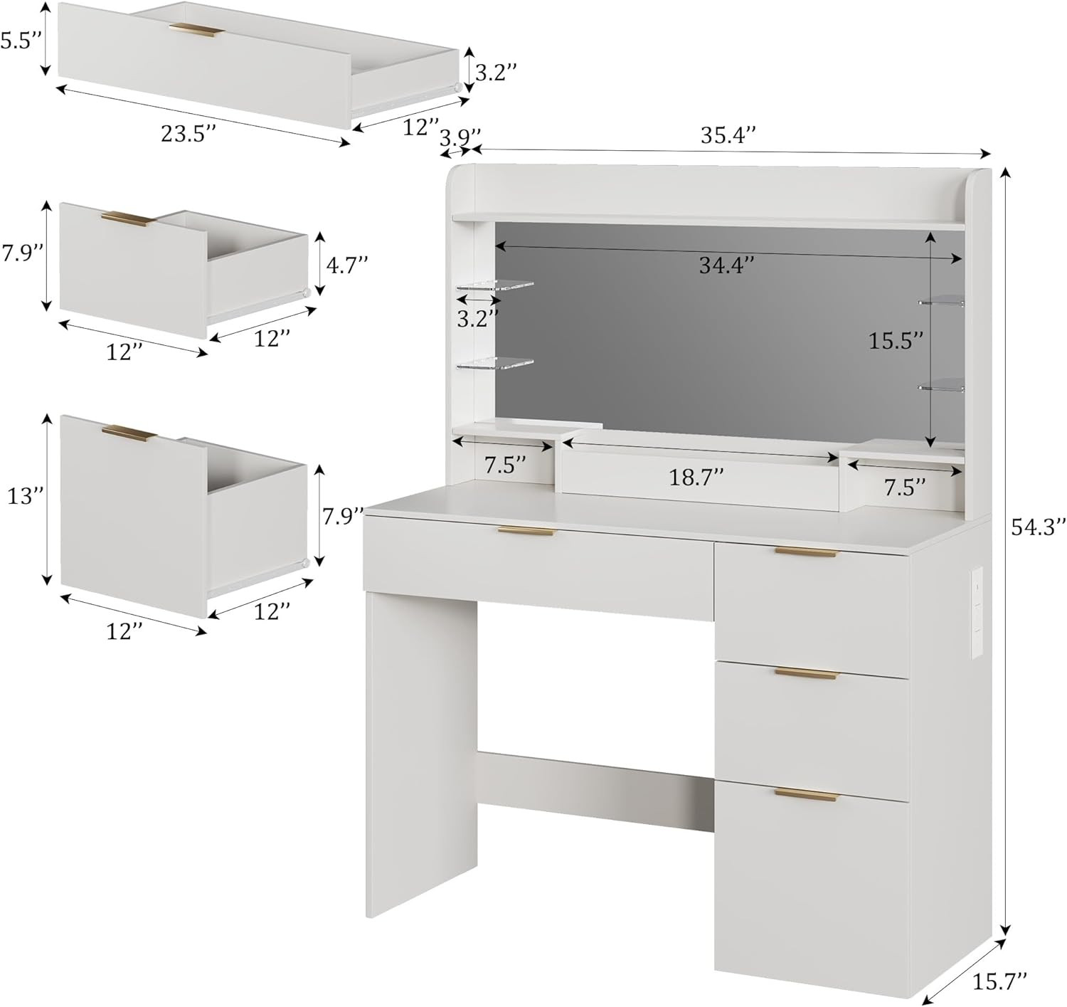 как выглядит Vanity Desk with Mirror and Lights, Makeup Vanity with Lights, 3 Color Lighting фото