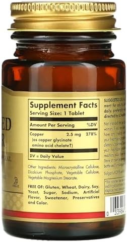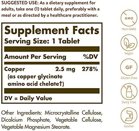 Solgar Chelated Copper 100 Tablets Vegan Non GMO Essential Mineral