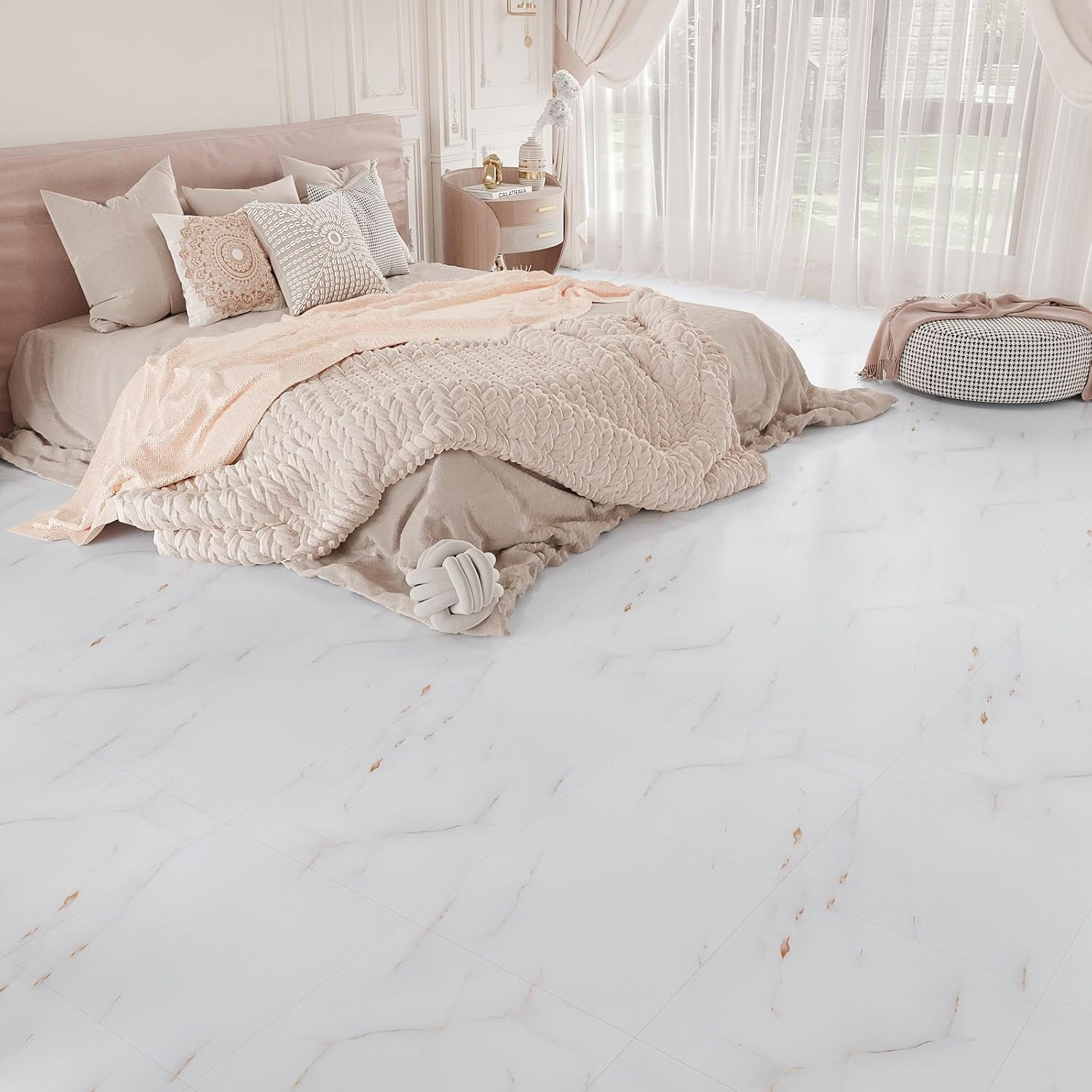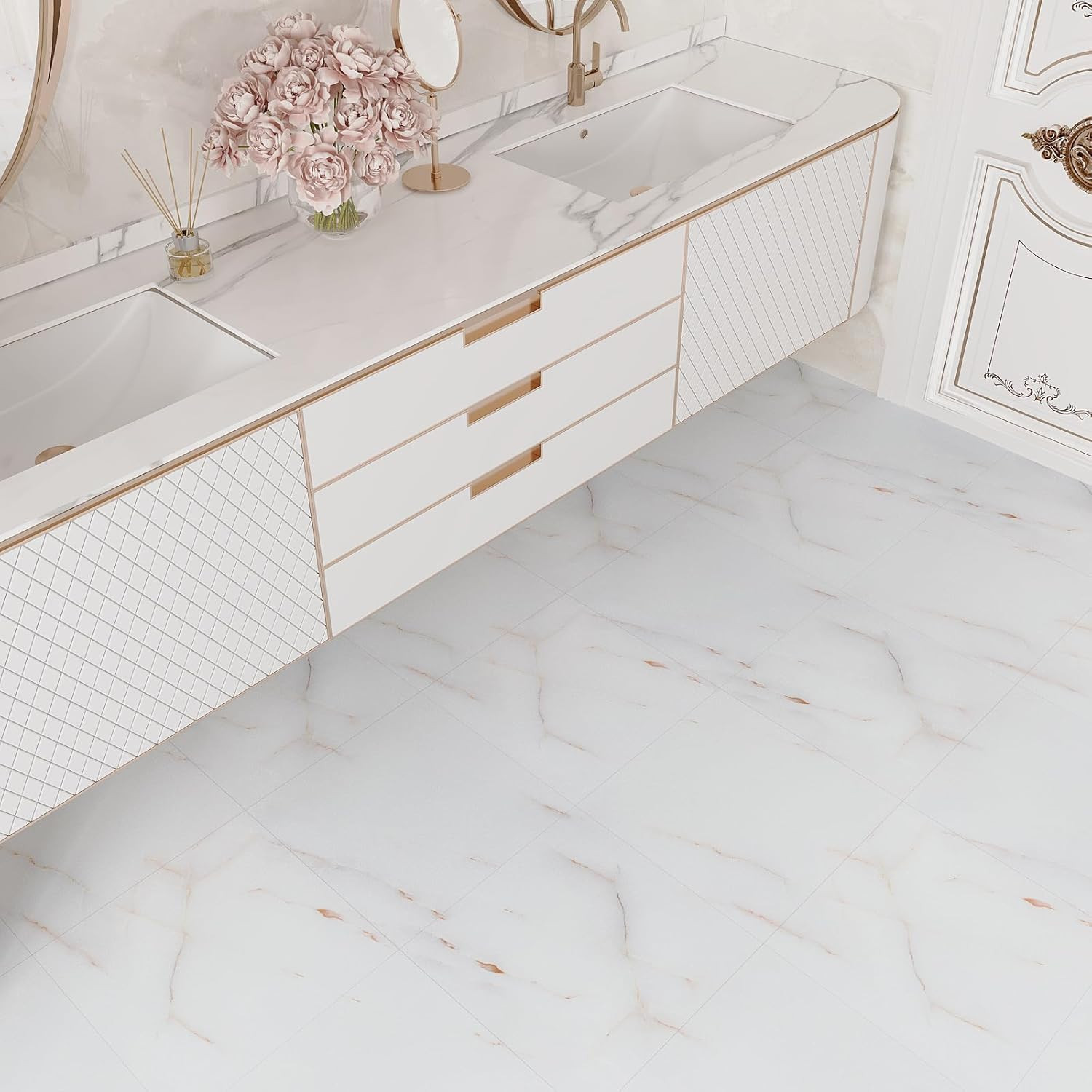 24 Pack Pink White Marble Peel and Stick Vinyl Floor Tiles 12x12