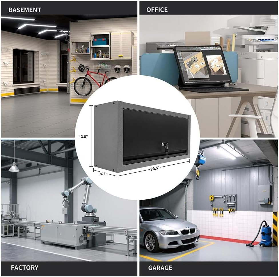 Lockable Steel Wall Cabinet for Garage Tool Storage - Durable Secure