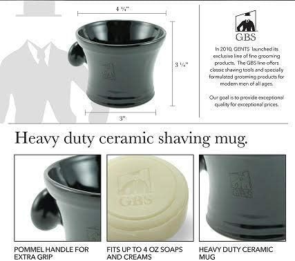 G.B.S Men's Black Ceramic Shaving Soap Bowl and Mug, Knob Handle, 3