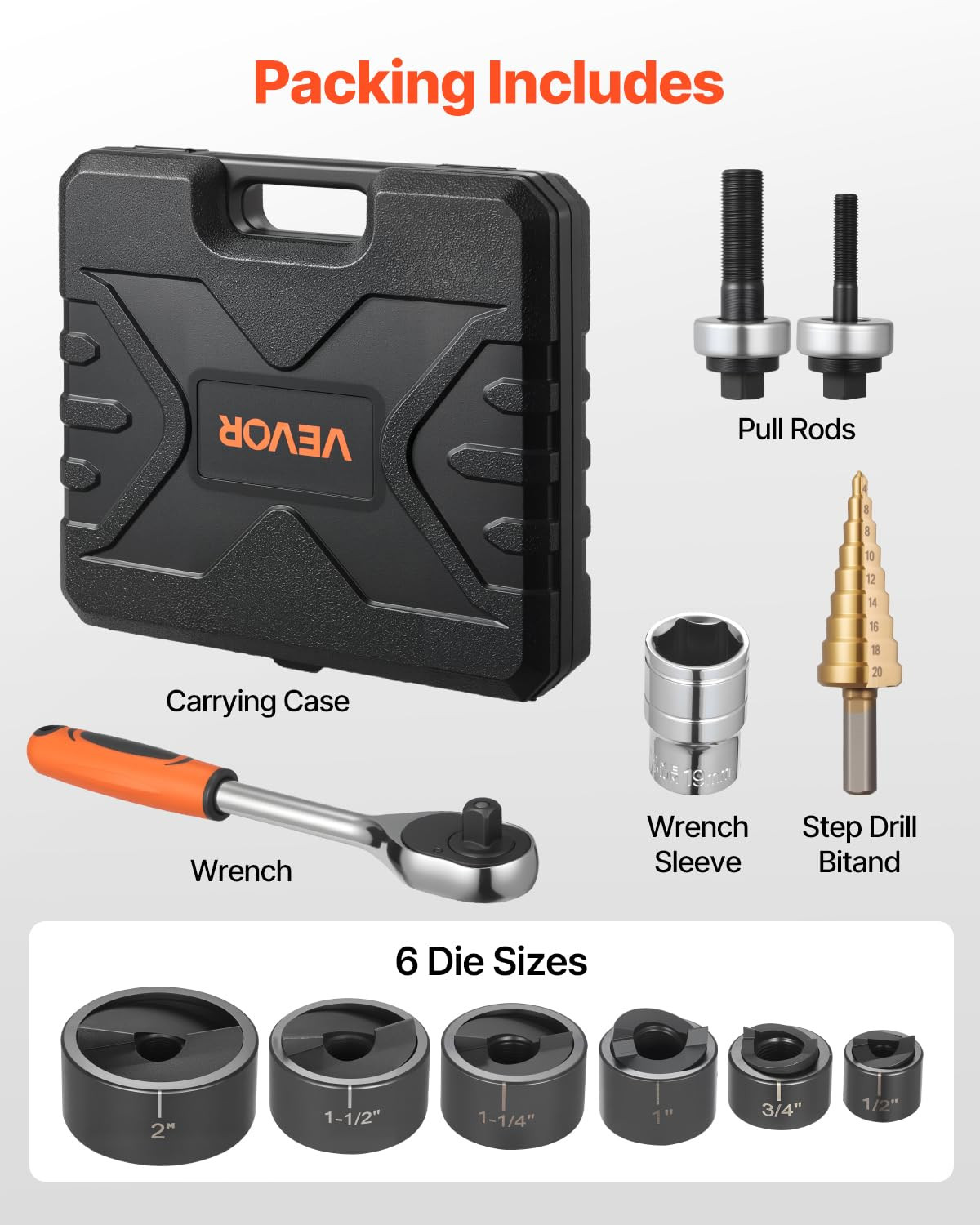 • Knockout Punch Set, 1/2 to 2 Inch Slug-Buster Ratchet Knockout Set, Ratchet Wren