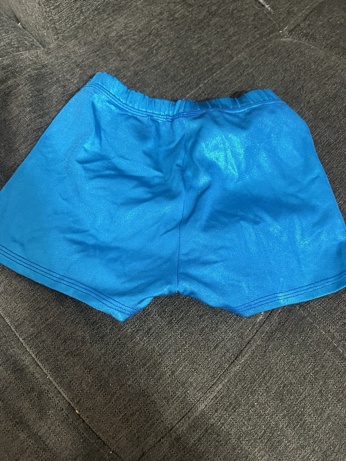 как выглядит Foxy s Leotards Blue Shimmer Shorts Size AS Cheer Dance Gymnastics Made Is USA фото