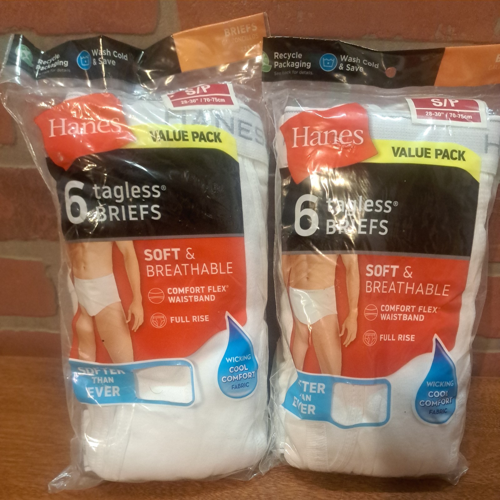 Lot of 2 - Hanes Briefs 6-Pack Tagless cool comfort full rise soft New