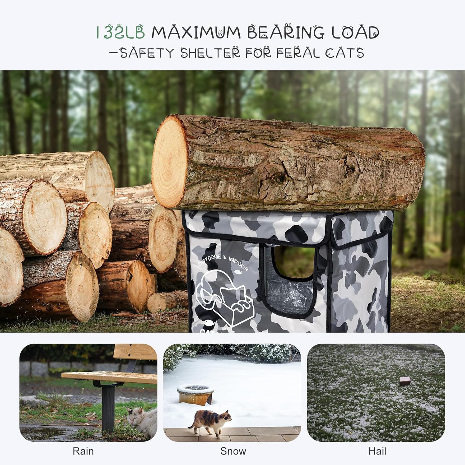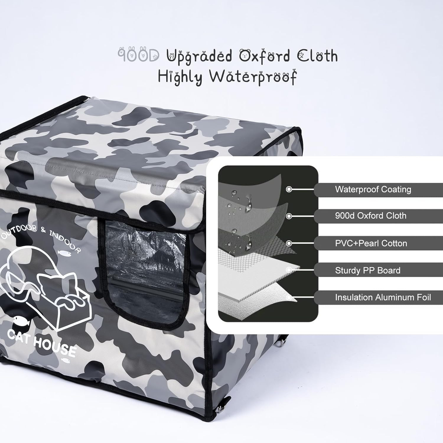 Indestructible Cat House Outdoor with Two-Sided Escape Door, Insulated and 100