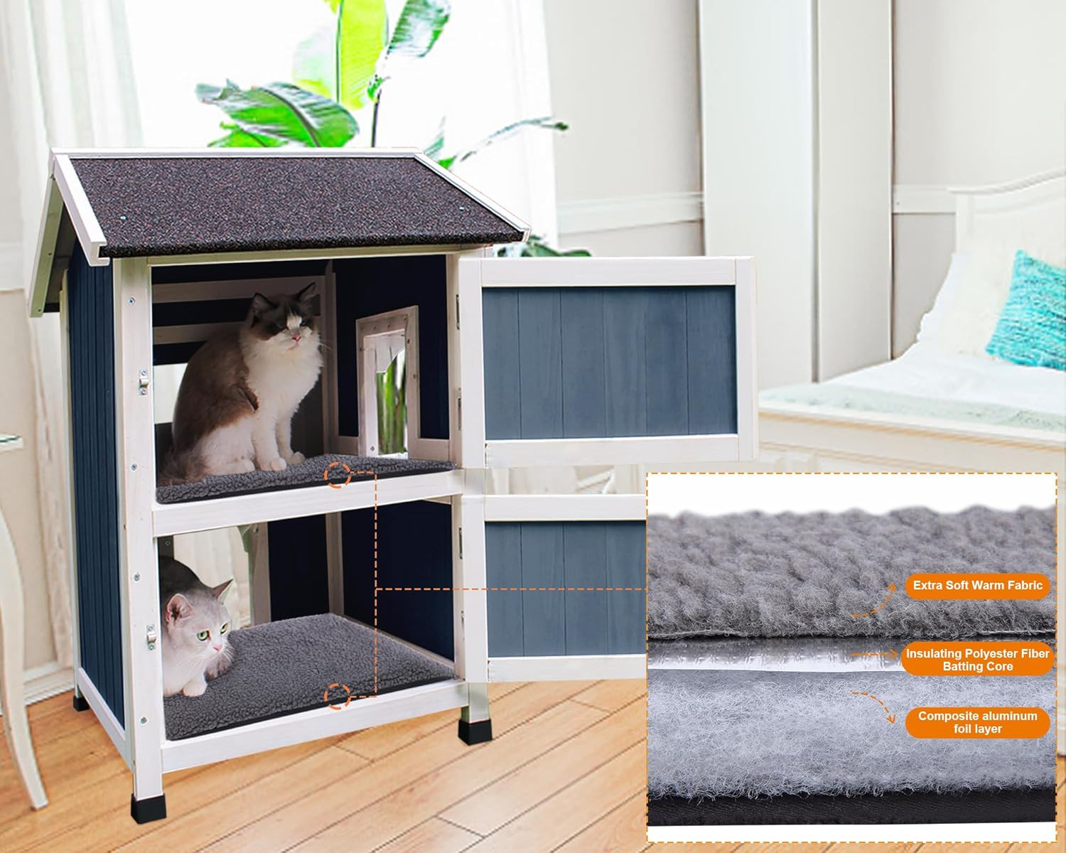 как выглядит Outdoor Cat House, 2 Story Outdoor Houses for Feral Cats Wooden outside Cat Shel фото