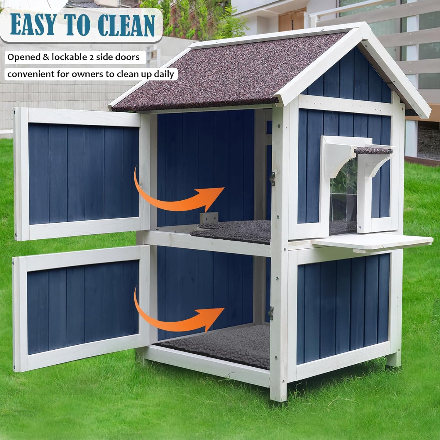 Outdoor Cat House, 2 Story Outdoor Houses for Feral Cats Wooden outside Cat Shel