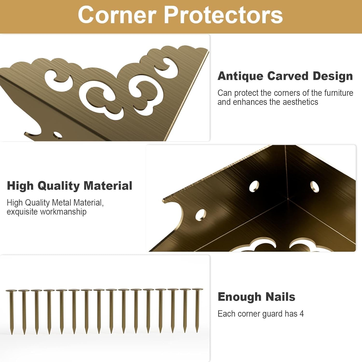 4 Pcs Corner Protector for Furniture,Retro Style Furniture Corner Bumpers-Bronze