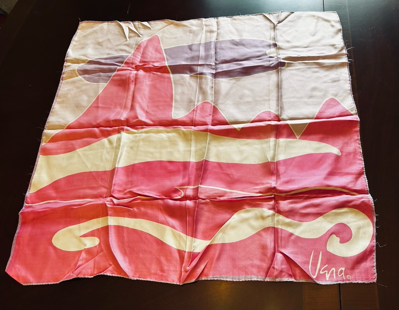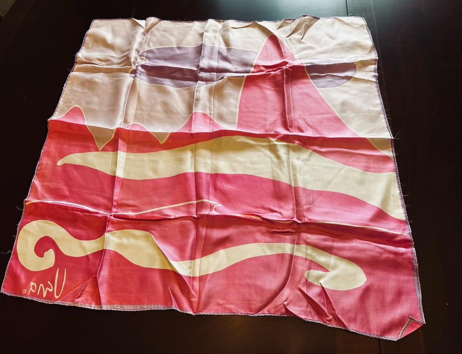 Vintage Vera Neumann Scarf Silk MOD Geometric 26 Square Pink Gray