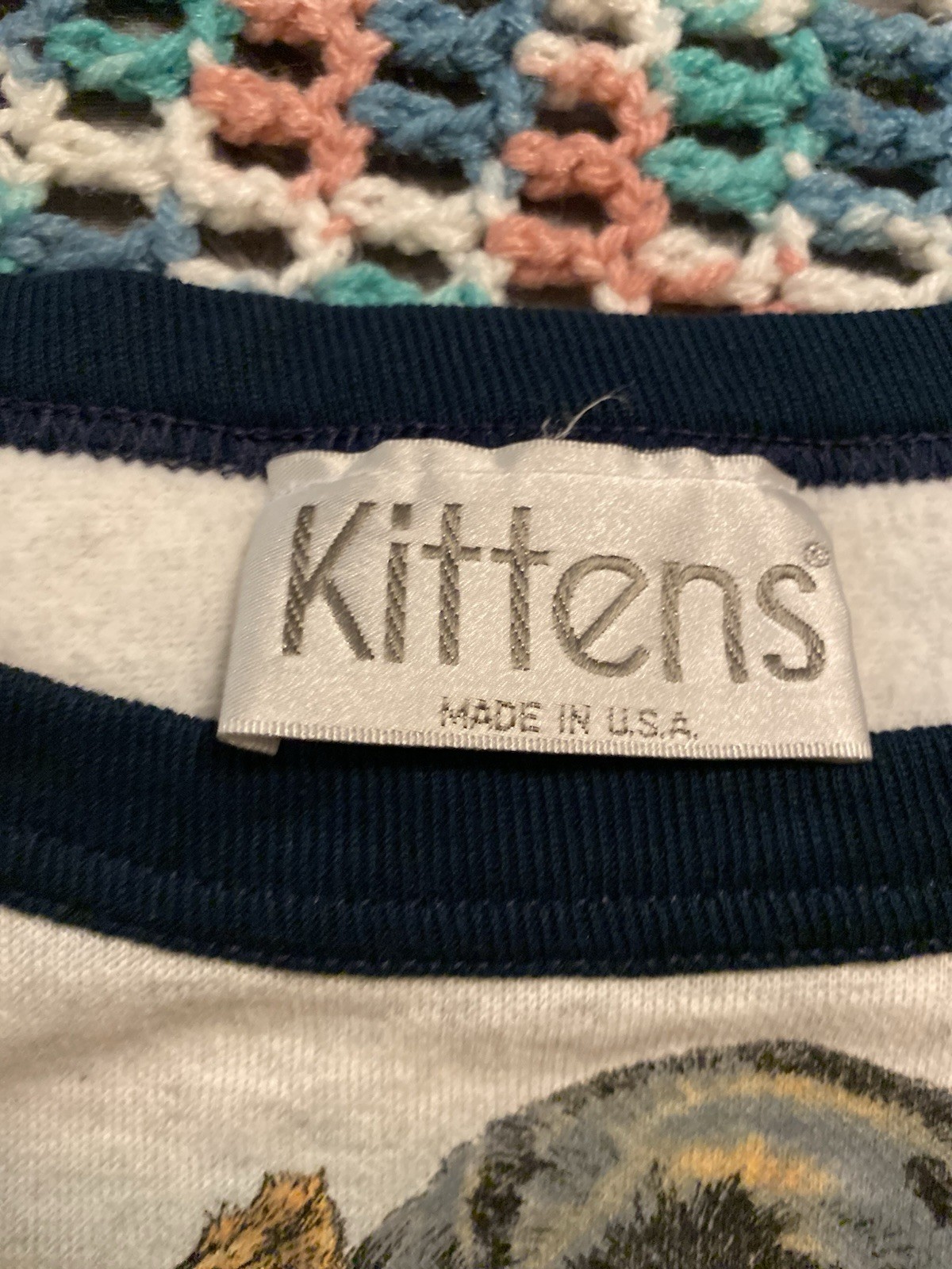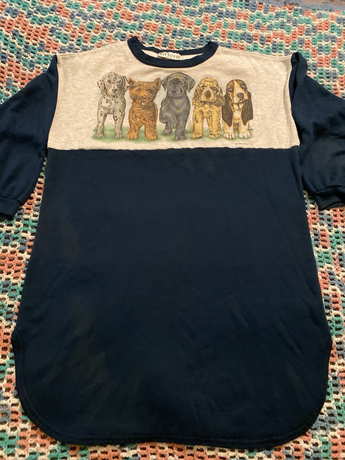 как выглядит Vintage 90 s Kittens Puppy Dogs Raglan Sleep Shirt Sz S/M/L 24in W X 36in L фото