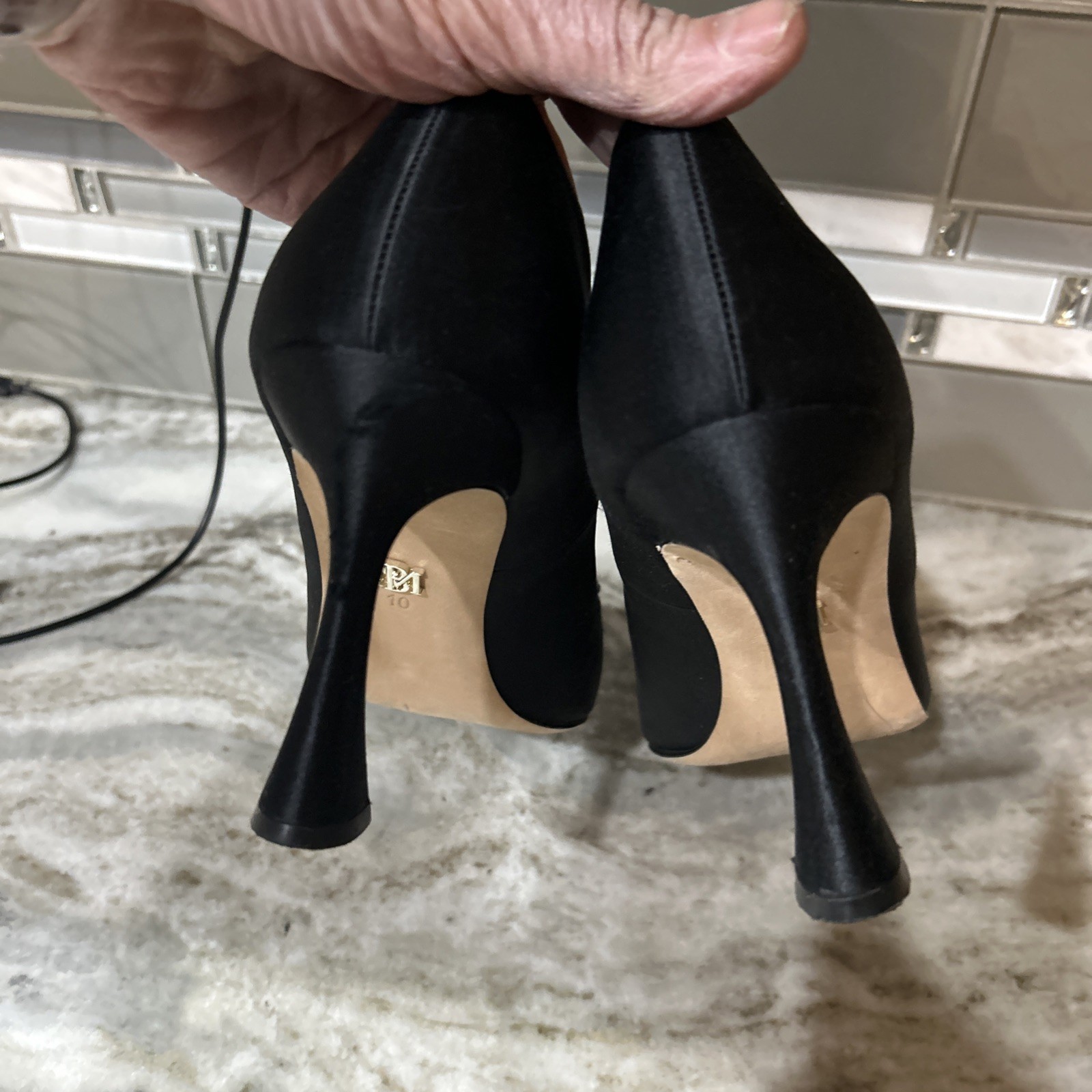 как выглядит Badgley Mischka Collection Cher Crystal Pump Black Satin Women 10 Formal Buckle фото