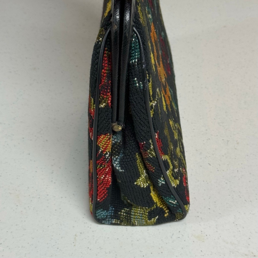 как выглядит Vintage Floral Tapestry Handbag with Gold Clasp фото