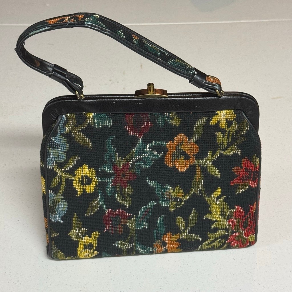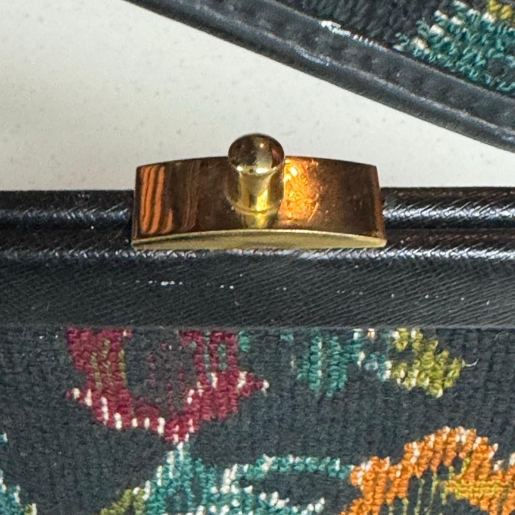 Vintage Floral Tapestry Handbag with Gold Clasp