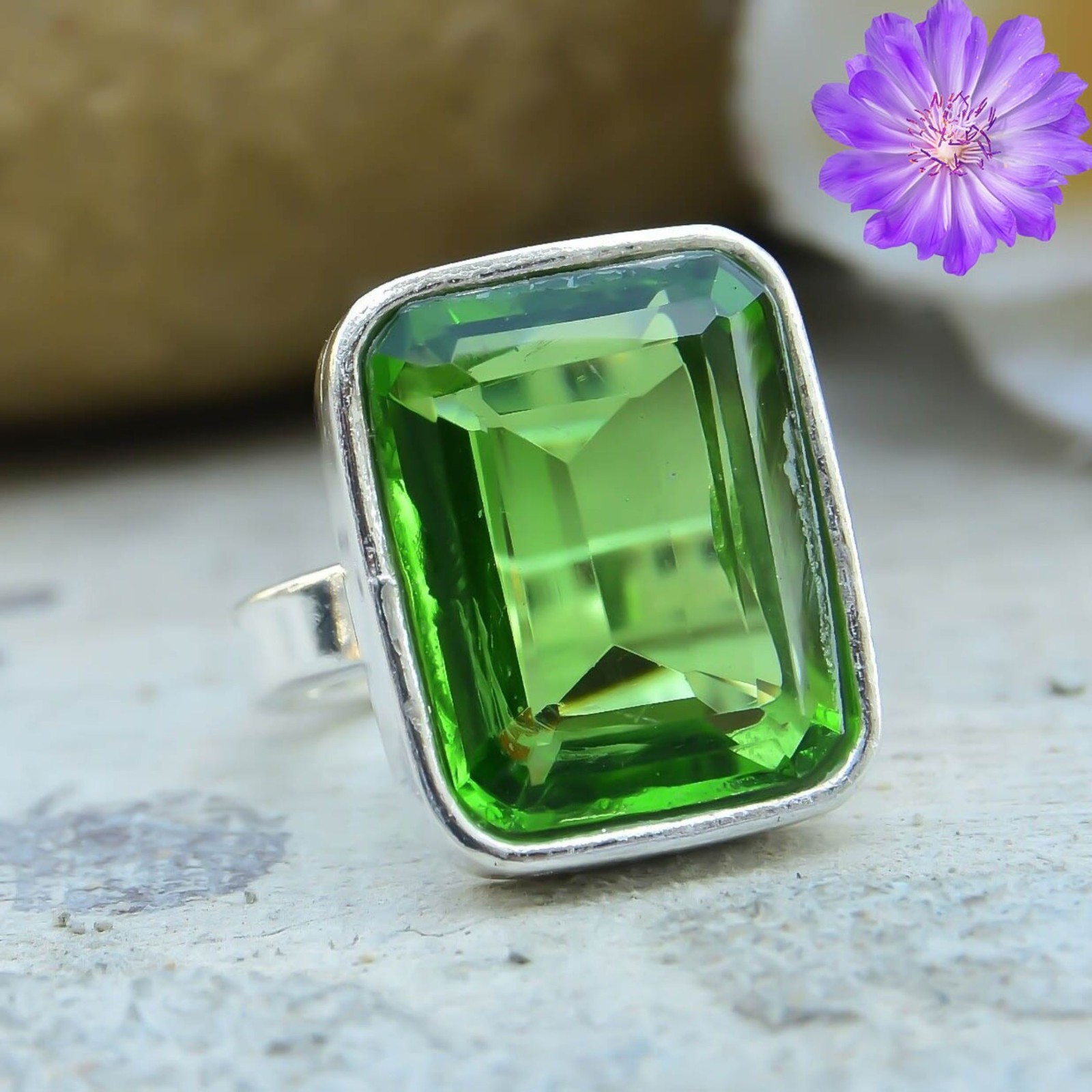 как выглядит Green Peridot Gemstone 925 Sterling Silver Handmade Jewelry Ring Gift For фото