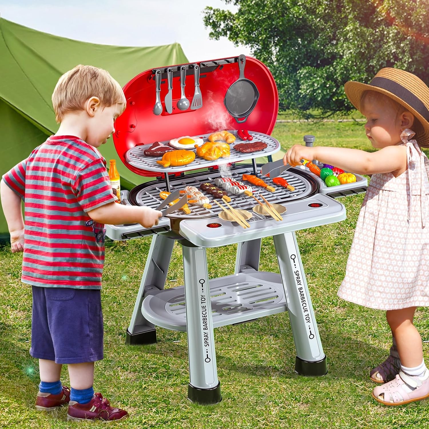 Kids BBQ Grill Playset for Kids Ages 4-8, Play Kitchen Toys with Smoke Light f
