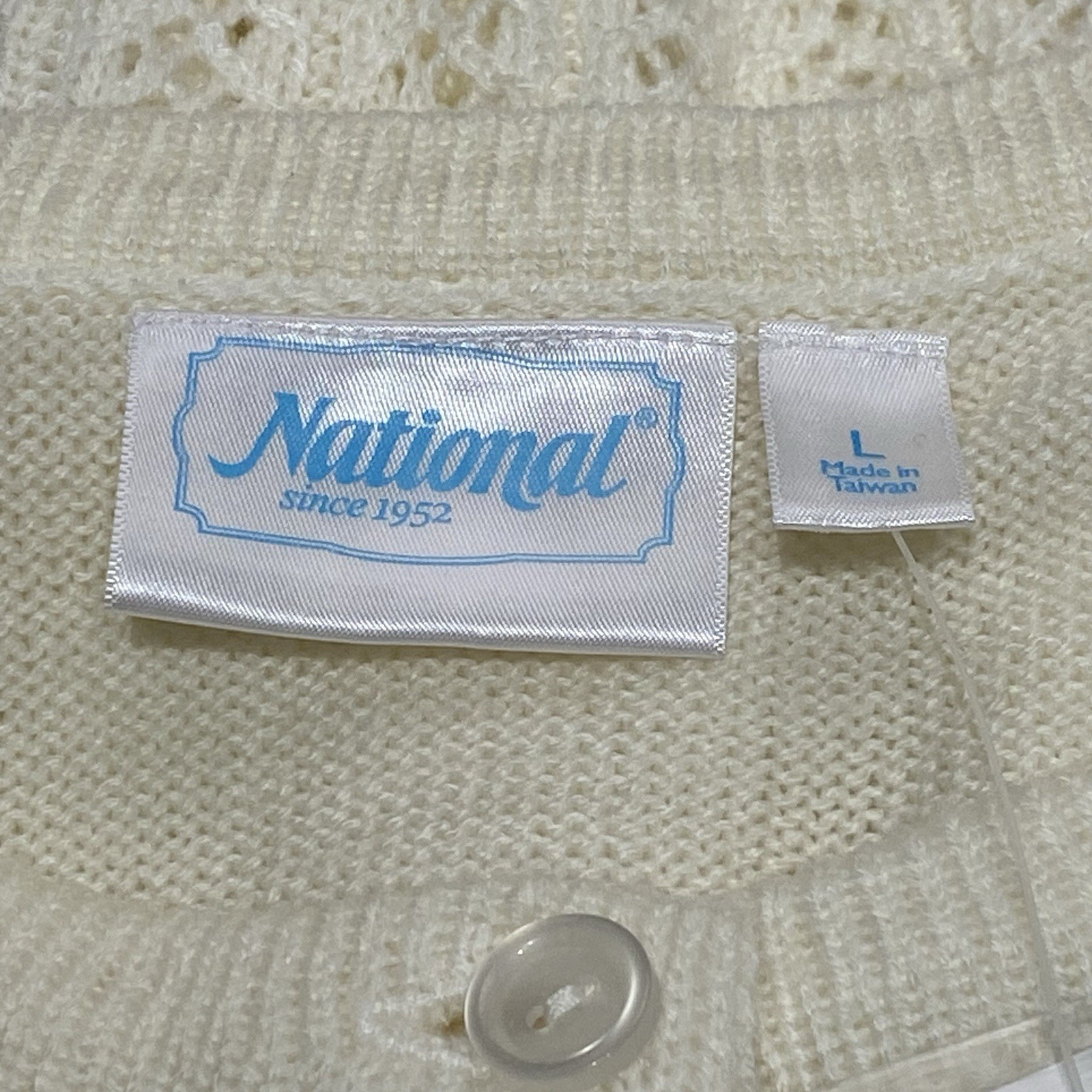 как выглядит Vintage Cardigan Sweater Women s Large Cream Crochet Details Acrylic Cottagecore фото