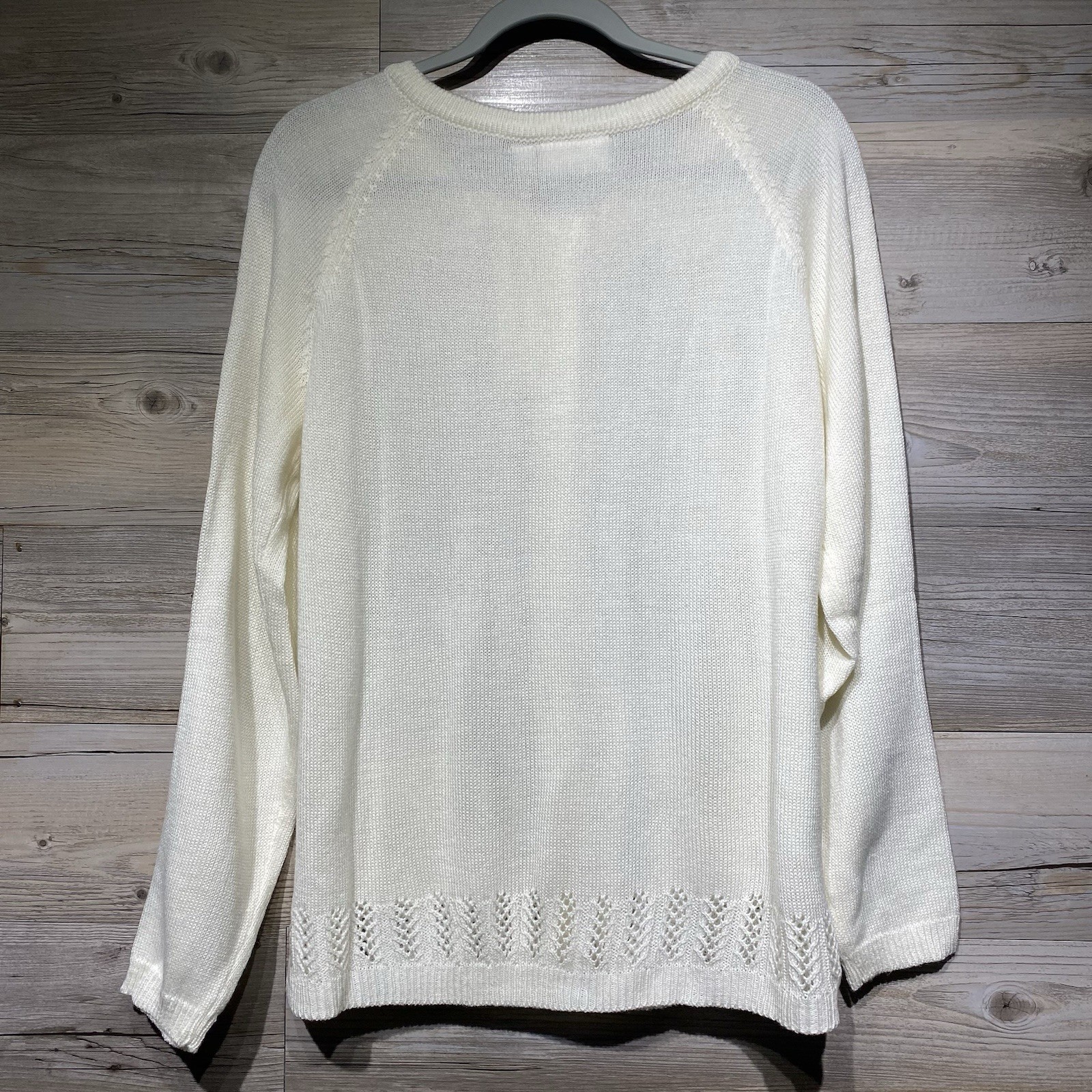 Vintage Cardigan Sweater Women s Large Cream Crochet Details Acrylic Cottagecore