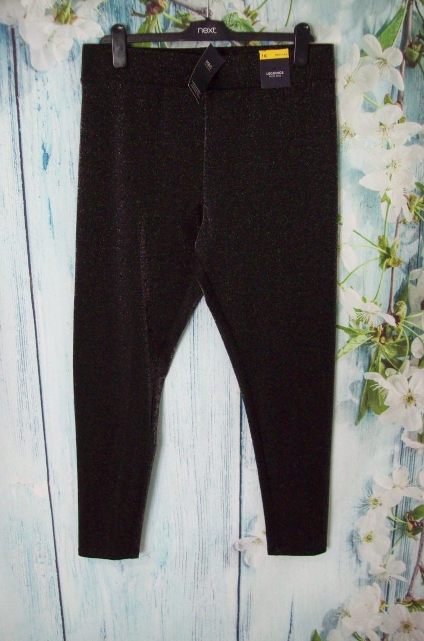 как выглядит M S Black Sparkle Leggings Size 16 High Waist Party Shimmer Evening NWT фото