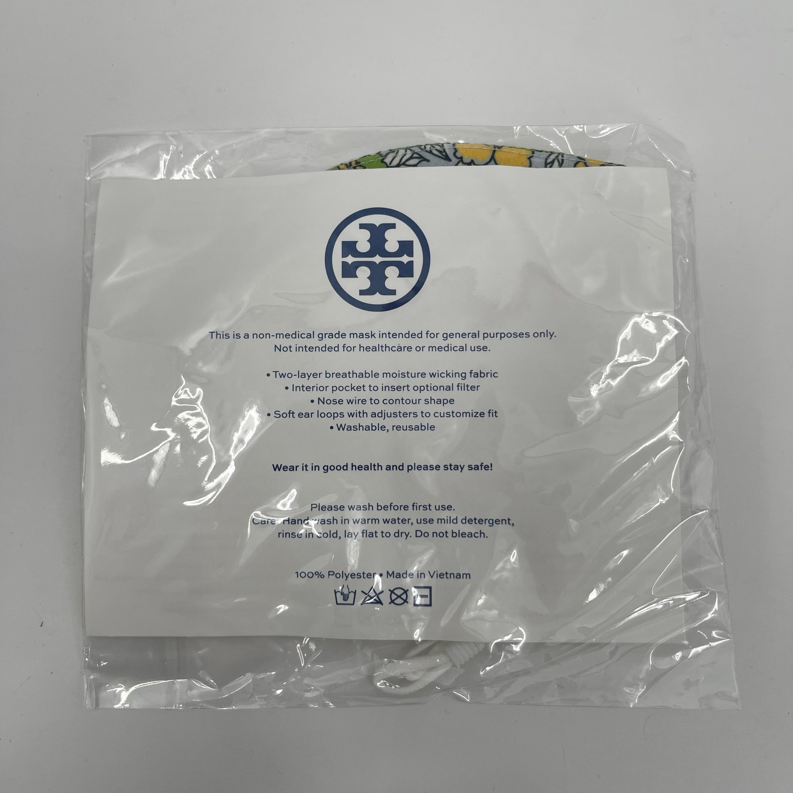 TORY BURCH Face Mask Blue Floral Print NWT Adjustable Straps Washable Reusable