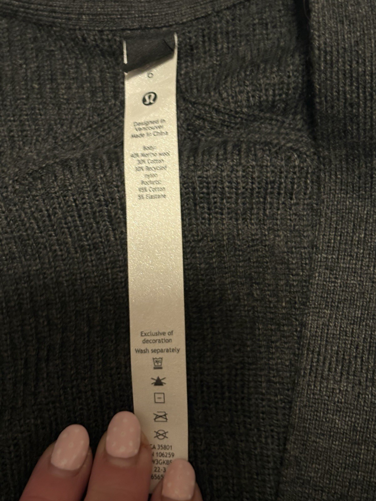 как выглядит Lululemon Merino Wool-Blend Rib Long Wrap Sweater in Heathered Black SZ. 6 NWOT фото