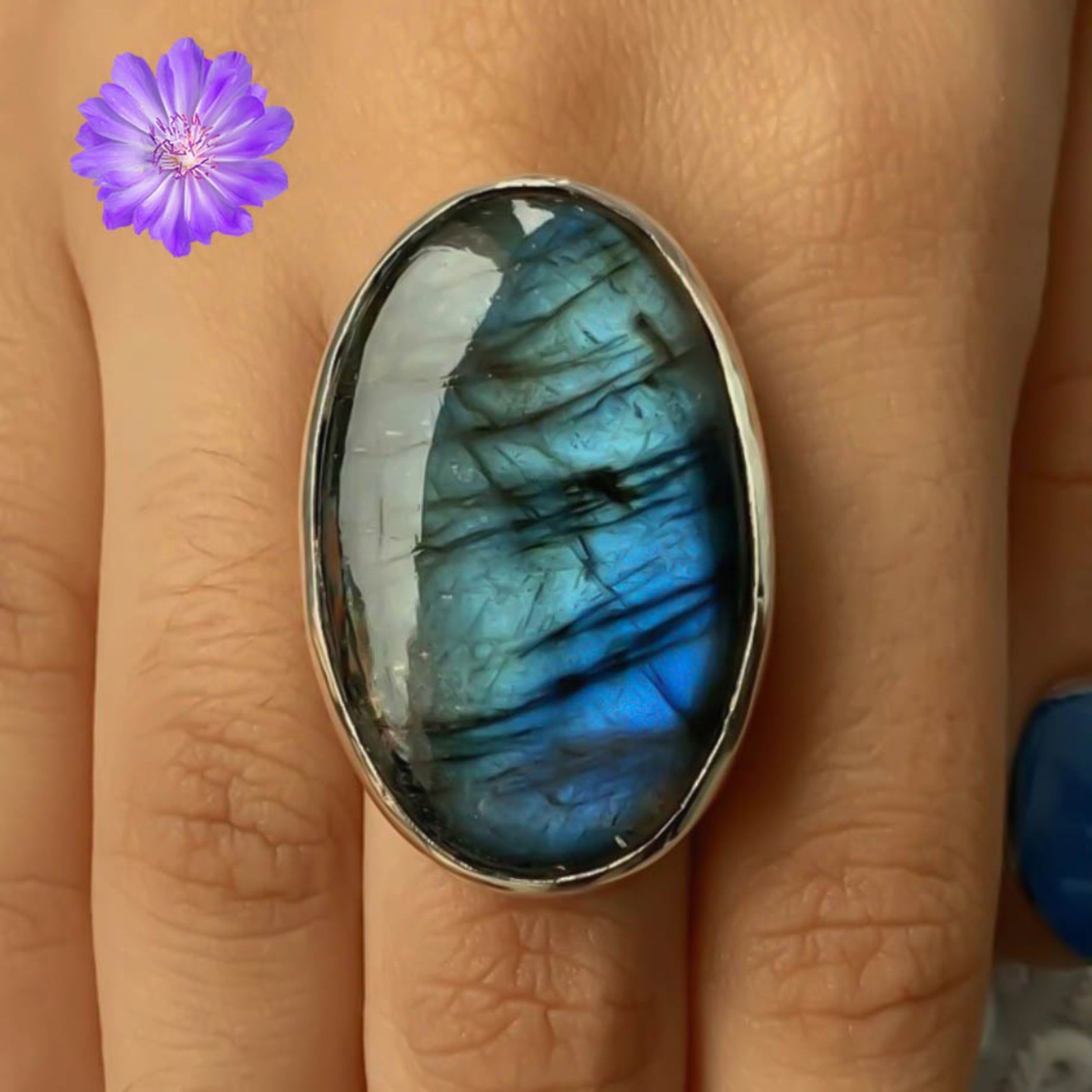 Natural Labradorite Gemstone 925 Sterling Silver Handmade Jewelry Ring Gift For