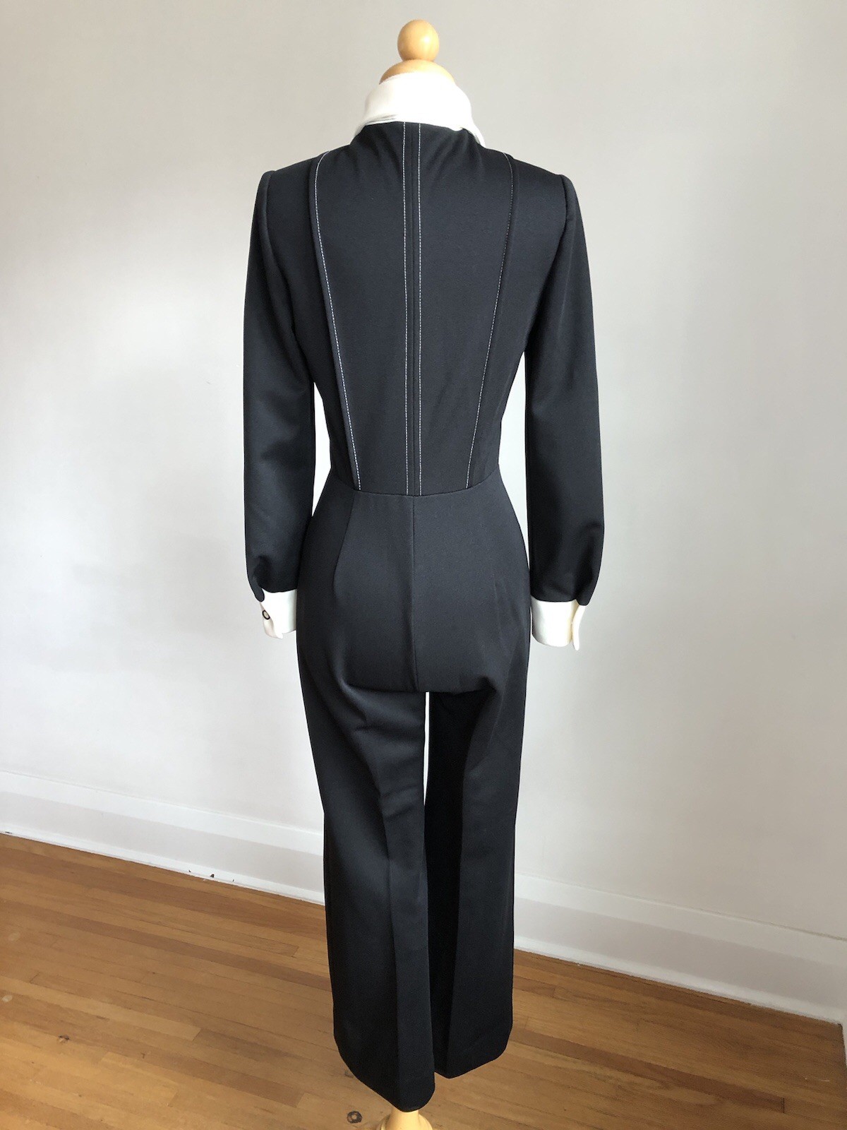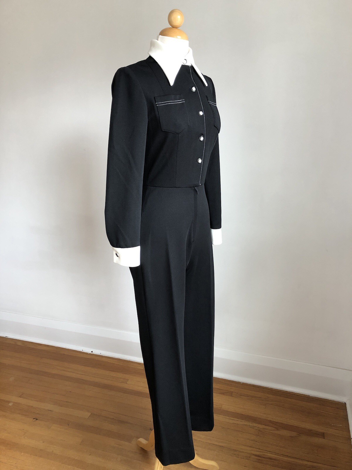 как выглядит STUNNING VTG MELISSA LANE Black White Double Knit Wide-leg Jumpsuit SZ XS/S фото