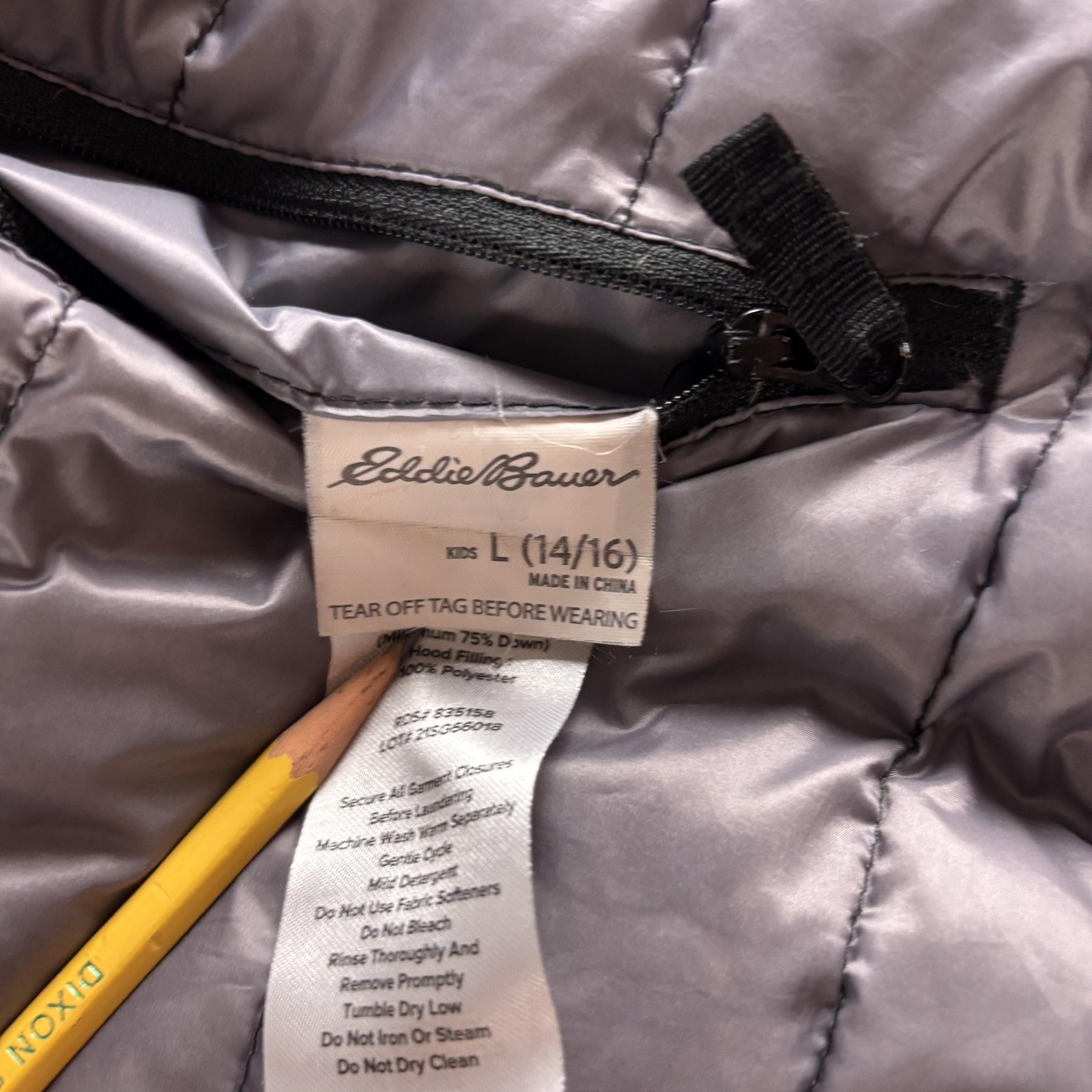 как выглядит Eddie Bauer Jacket Youth Large 14/16 Black Gray Hooded Down Puffer Coat Boys фото