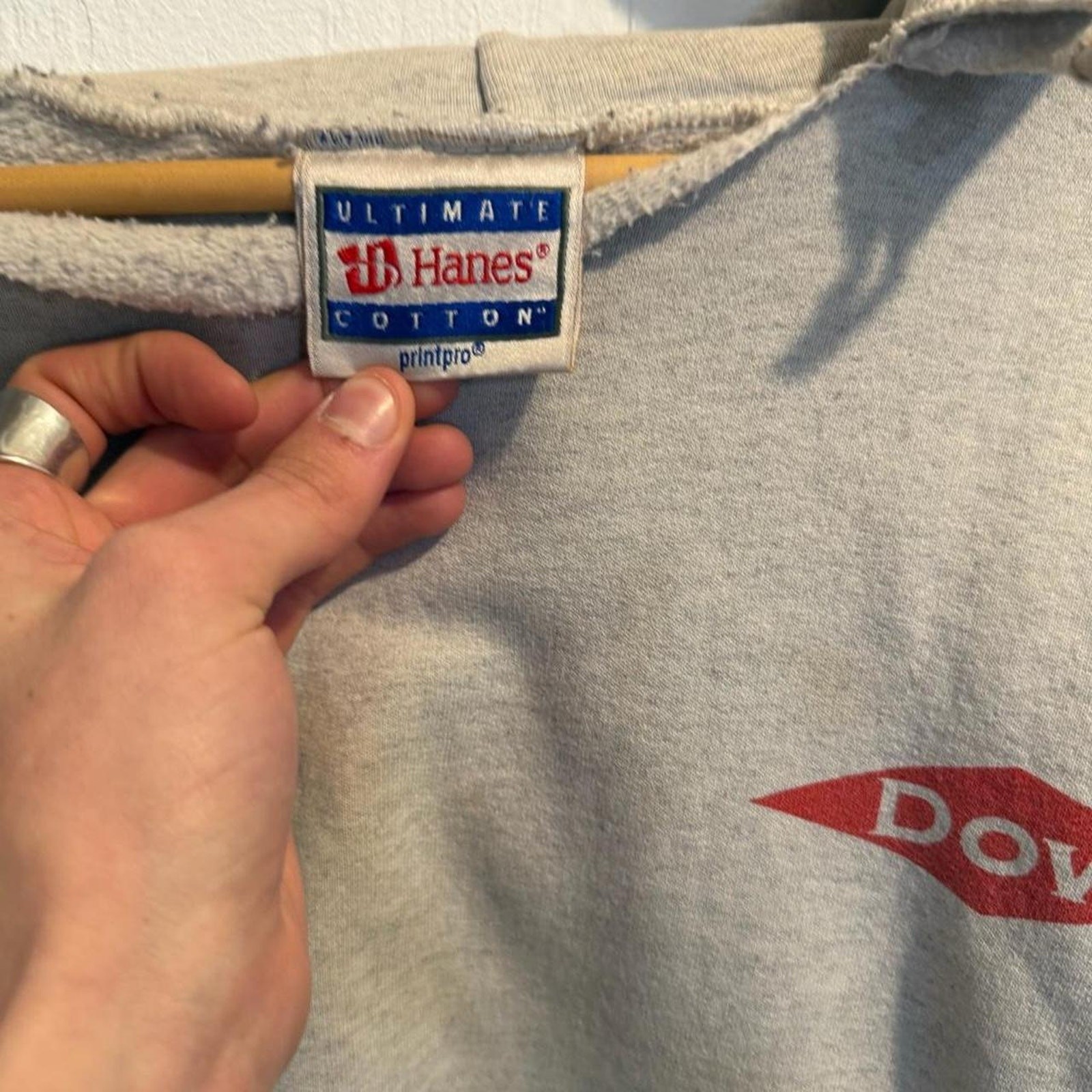 vintage 90s baggy boxy distressed hanes graphic work hoodie