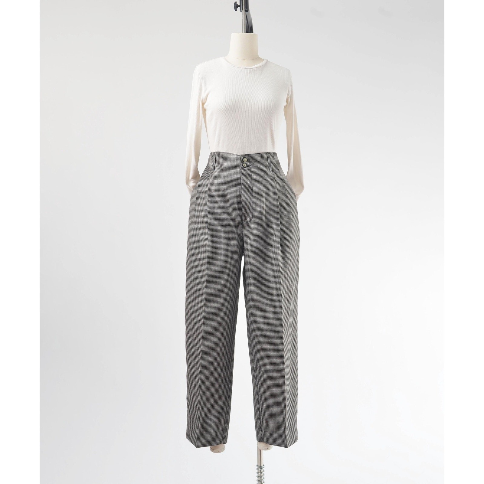Vintage 90s Houndstooth Pleated Front Tapered Leg Trouser Pants size M