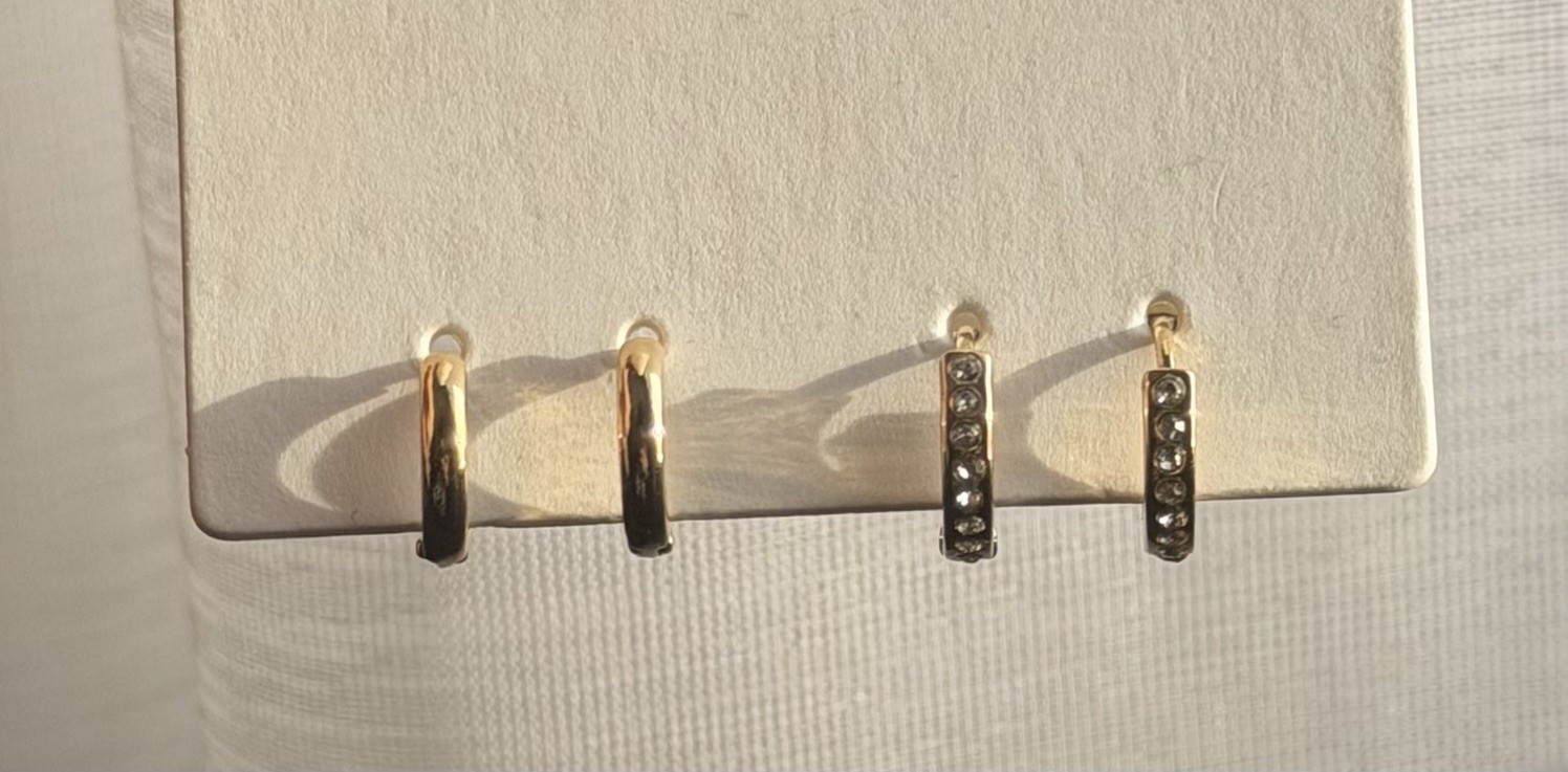 2 Pairs Gold Hoop Earrings CZ Trendy 14k Gold Plated lightweight Small For Women