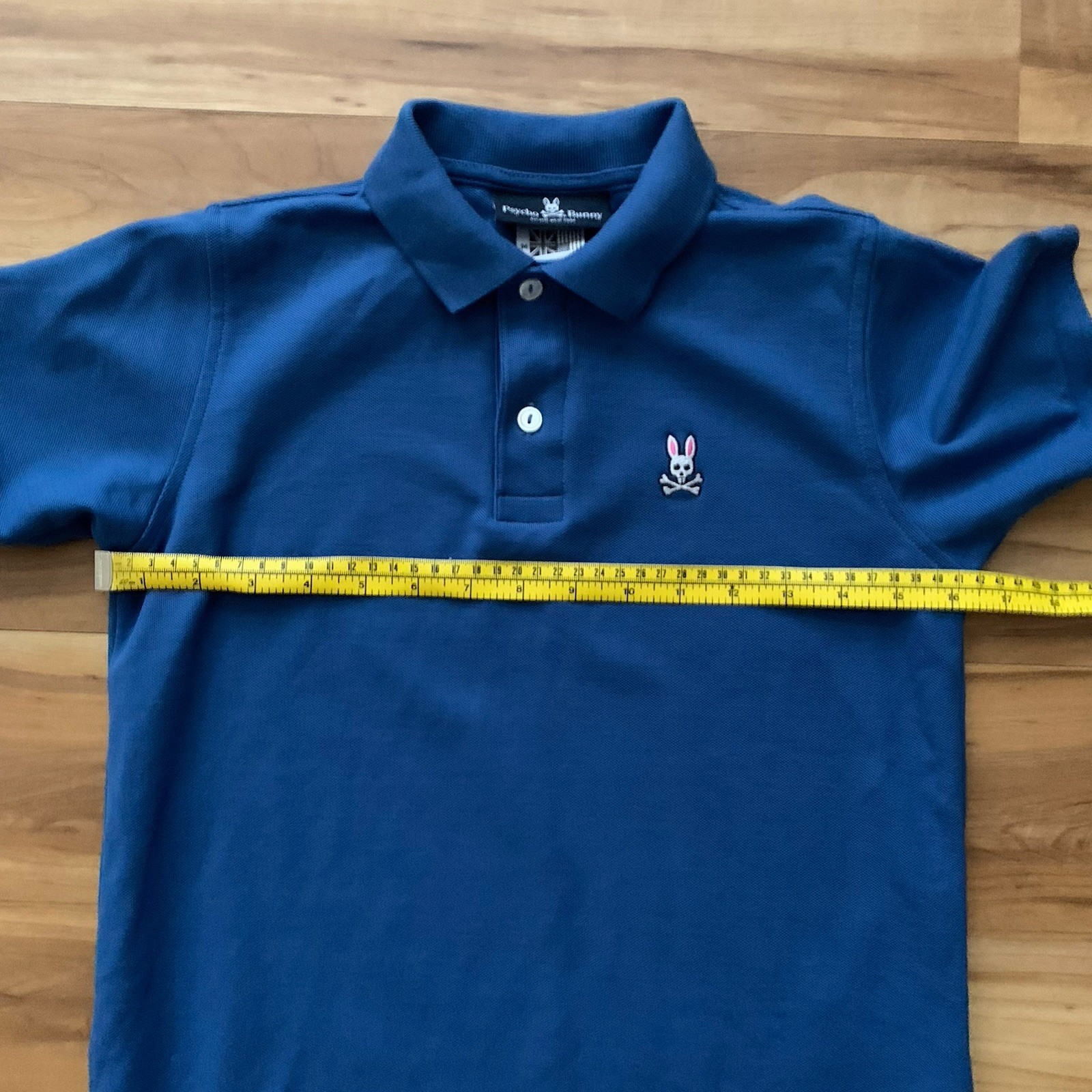 как выглядит Psycho Bunny Youth Boys Medium Blue Short Sleeve Polo Shirt Bunny Logo фото